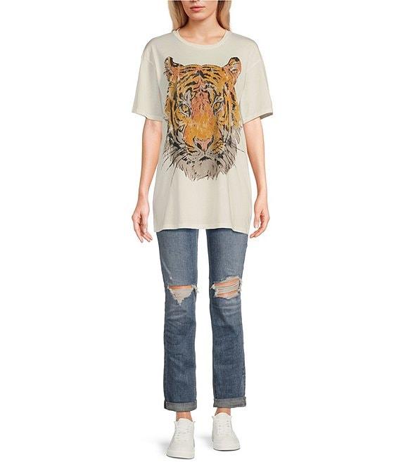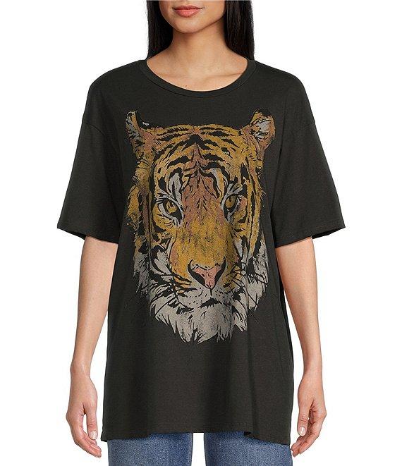 Originality Short Sleeve Oversized Tiger Graphic T-Shirt