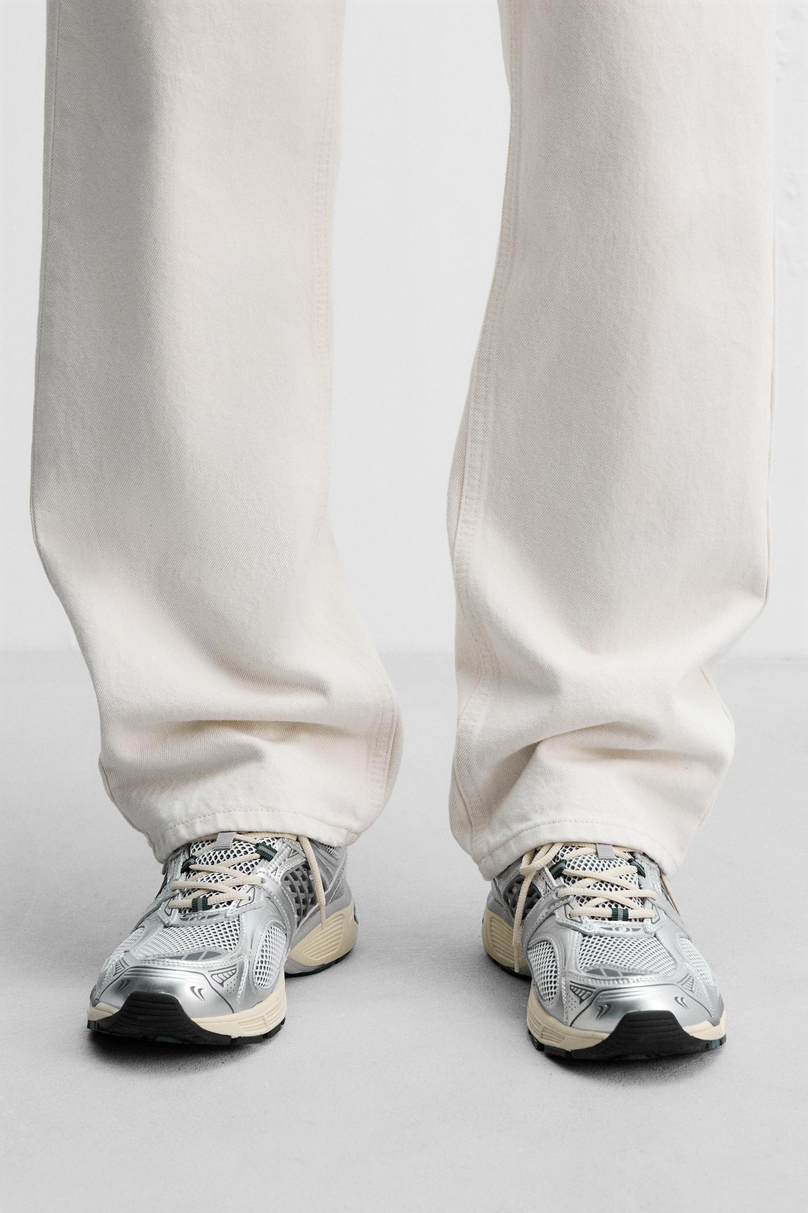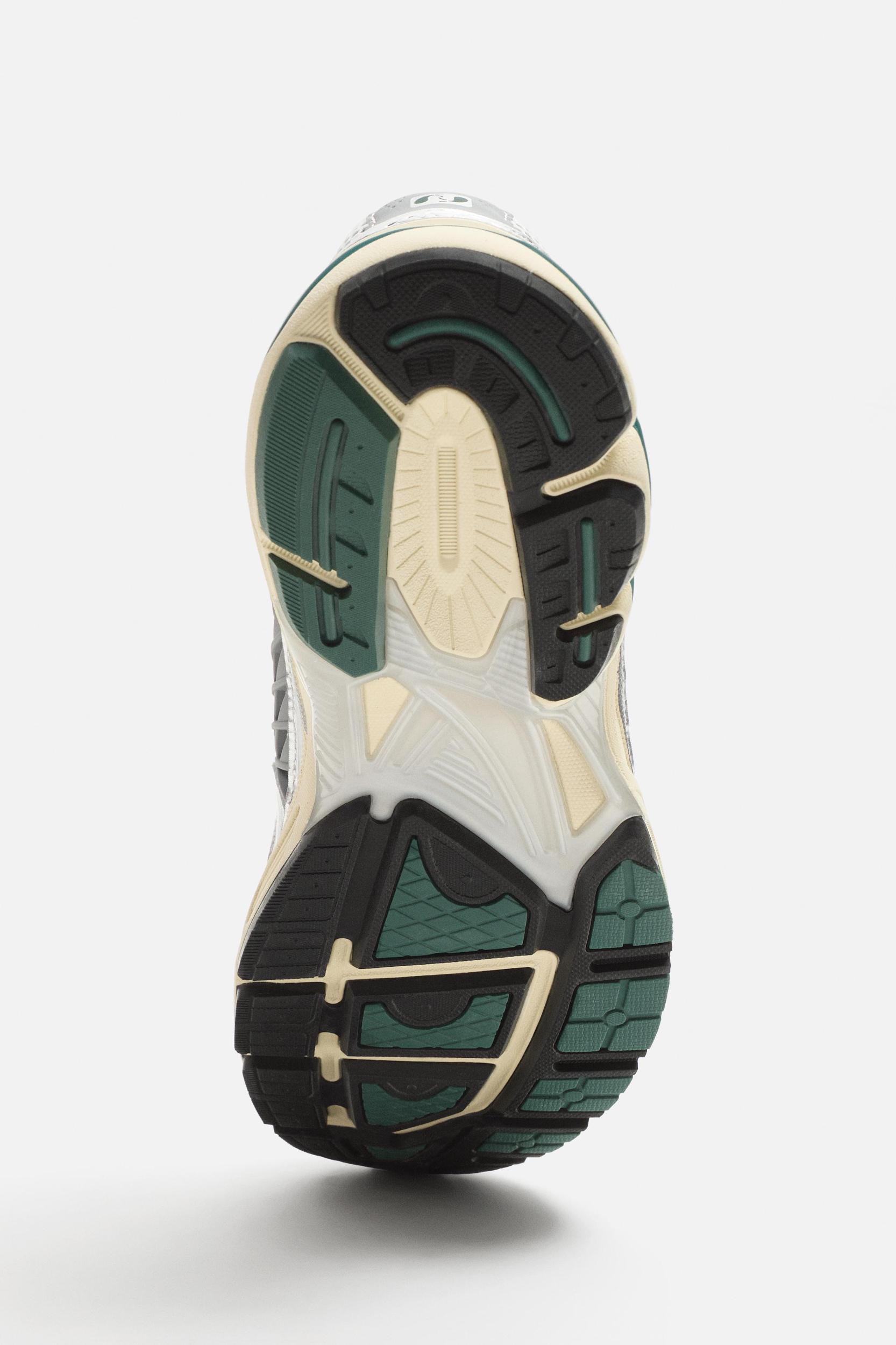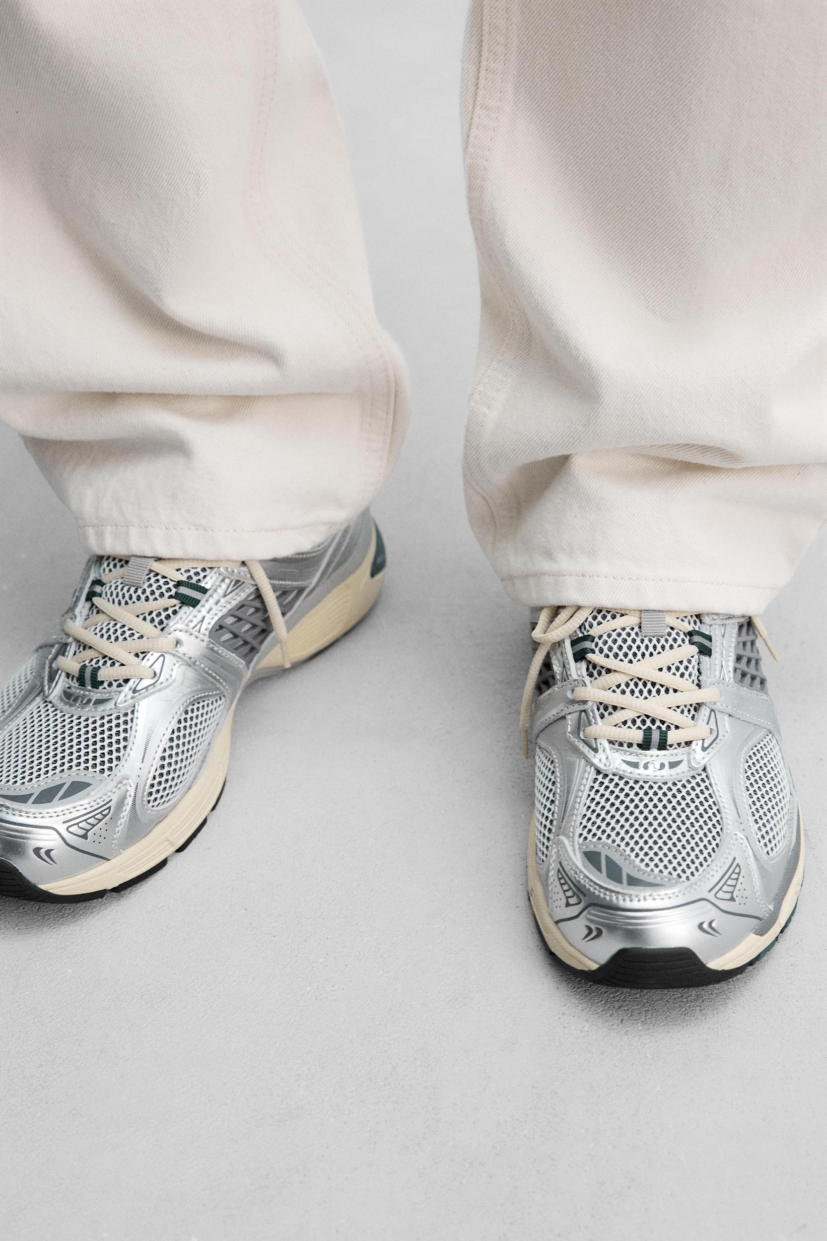 Running shoes. Upper made in a combination of leather and mesh. Lacing with seven pairs of eyelets. Chunky soles with irregular design. Origins special collection.