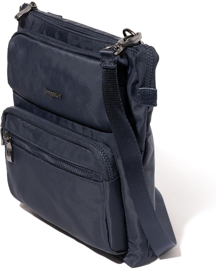 Upgrade your crossbody with a bag that anticipates your needs. The Baggallini® Nolita Crossbody Bag is designed with two front exterior pockets, secure your glasses, shades, and lip balm within reach. Free your hands (and back pocket) with the grab-and-go phone pocket and with an RFID-protected wristlet, the Nolita is an easy pick for daily use, international travel, and beyond. The crossbody bag features an adjustable & detachable crossbody strap and the zippered closure with seven pockets enhance the functionality.