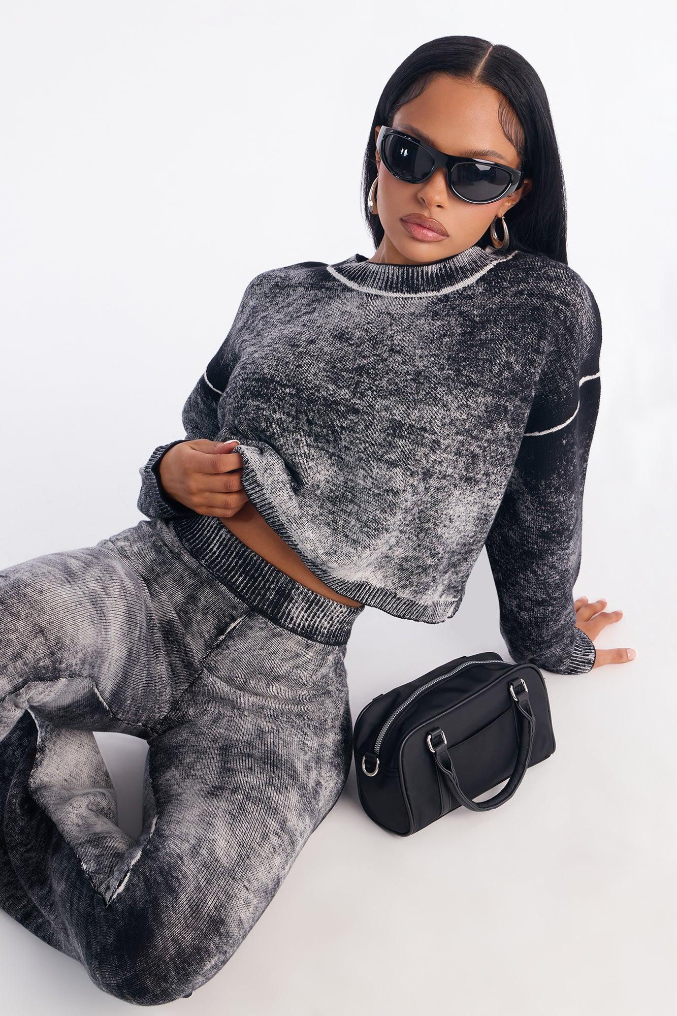 Out Of This World Washed Sweater Wide Leg Pant Set - Black Female