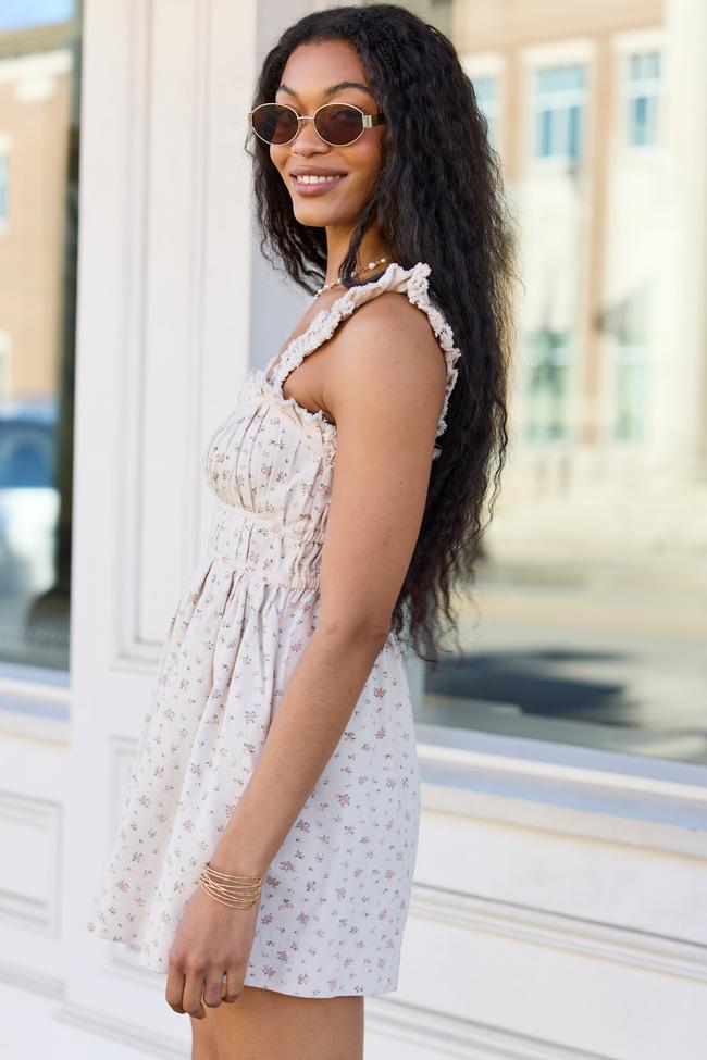 Out West Beige Printed Denim Romper Dress Girls