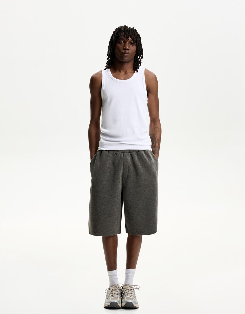 Oversize neoprene-effect Bermuda shorts