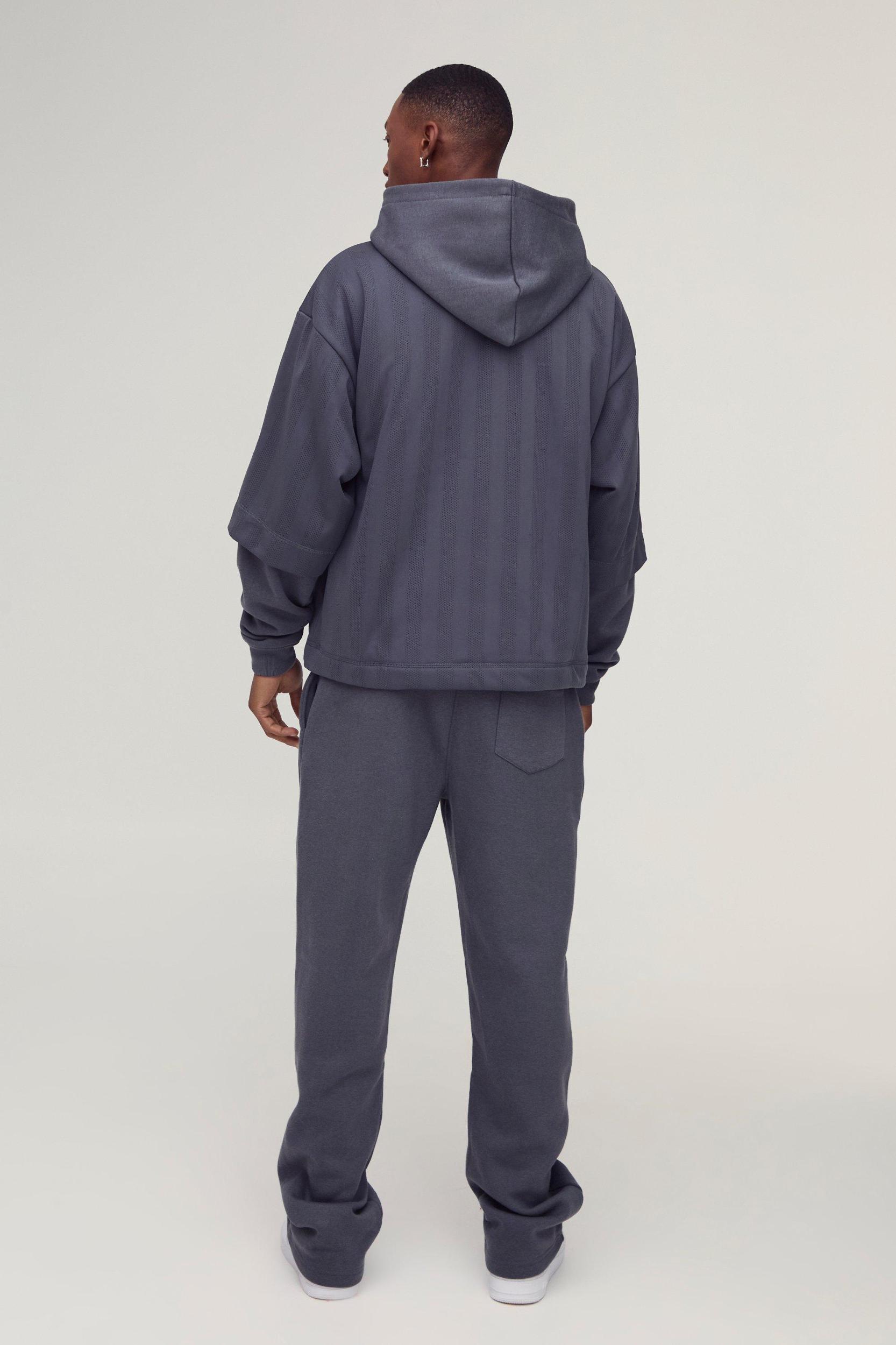 Mens Grey Oversized 90 Printed Football Tee Overlay Hooded Tracksuit - Create cool combos with hooded tracksuits from BoohooMAN. Mix and match shapes and colours with this uber-stylish collection of hooded tracksuits, designed to go from sofa to streets with no extra effort. Show off your lines with a skinny fit set, or pick an oversized hoodie and joggers duo for comfy street casual. With a white tee and trainers you can rock any combo - how about all black for a bold monochrome, long sleeves and shorts for casual summer party vibes or even baby pink or blue for a softer aesthetic. Whichever you choose, with our range of hooded mens tracksuits youll look effortlessly cool both in the gym and out.