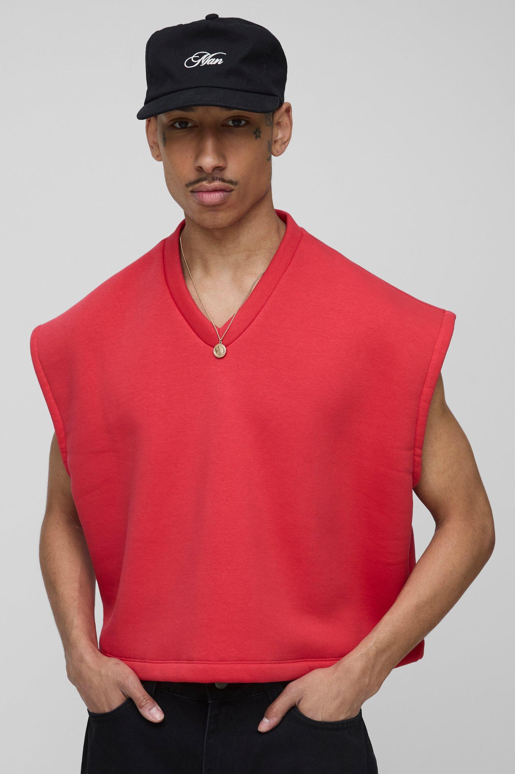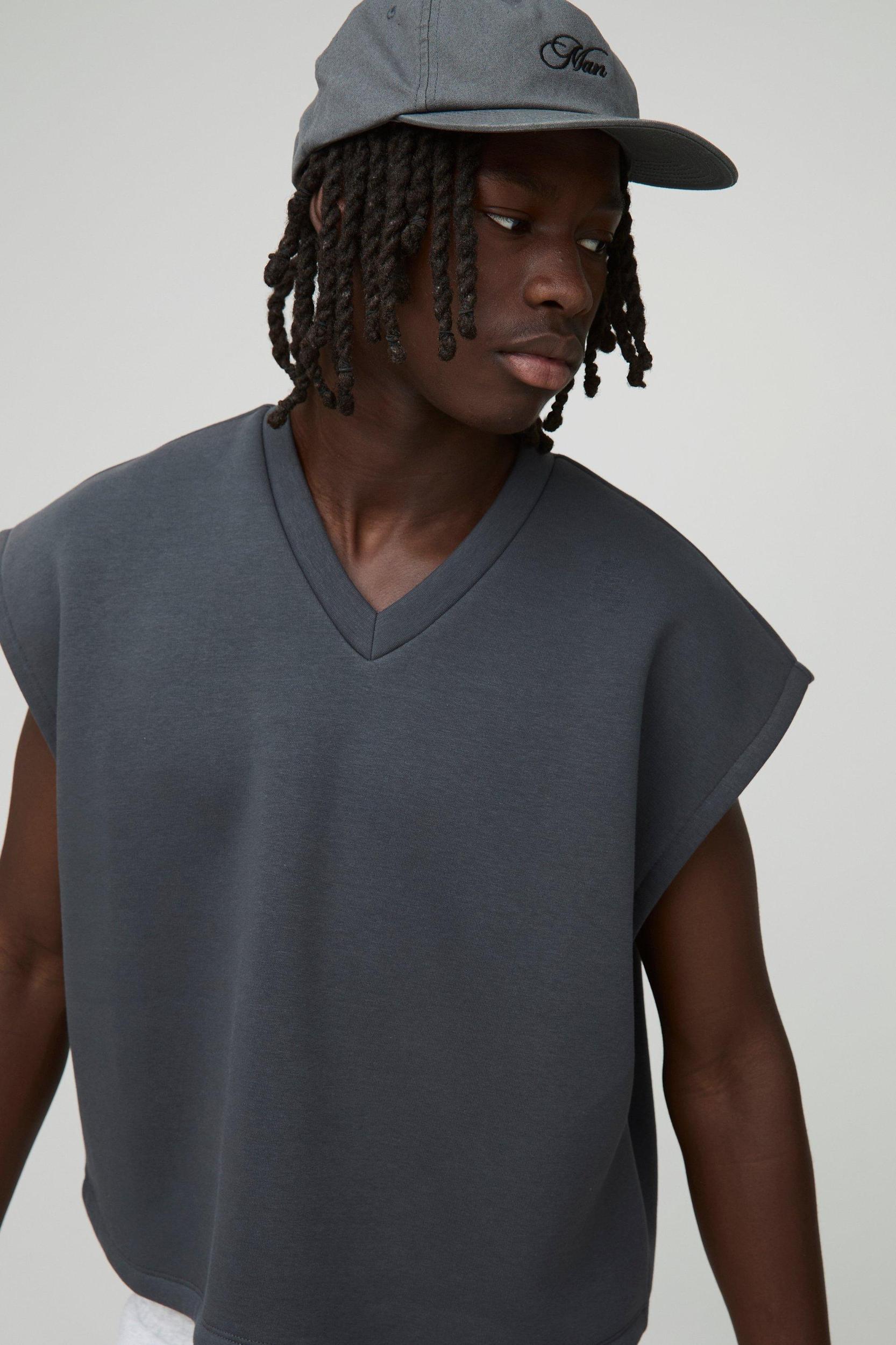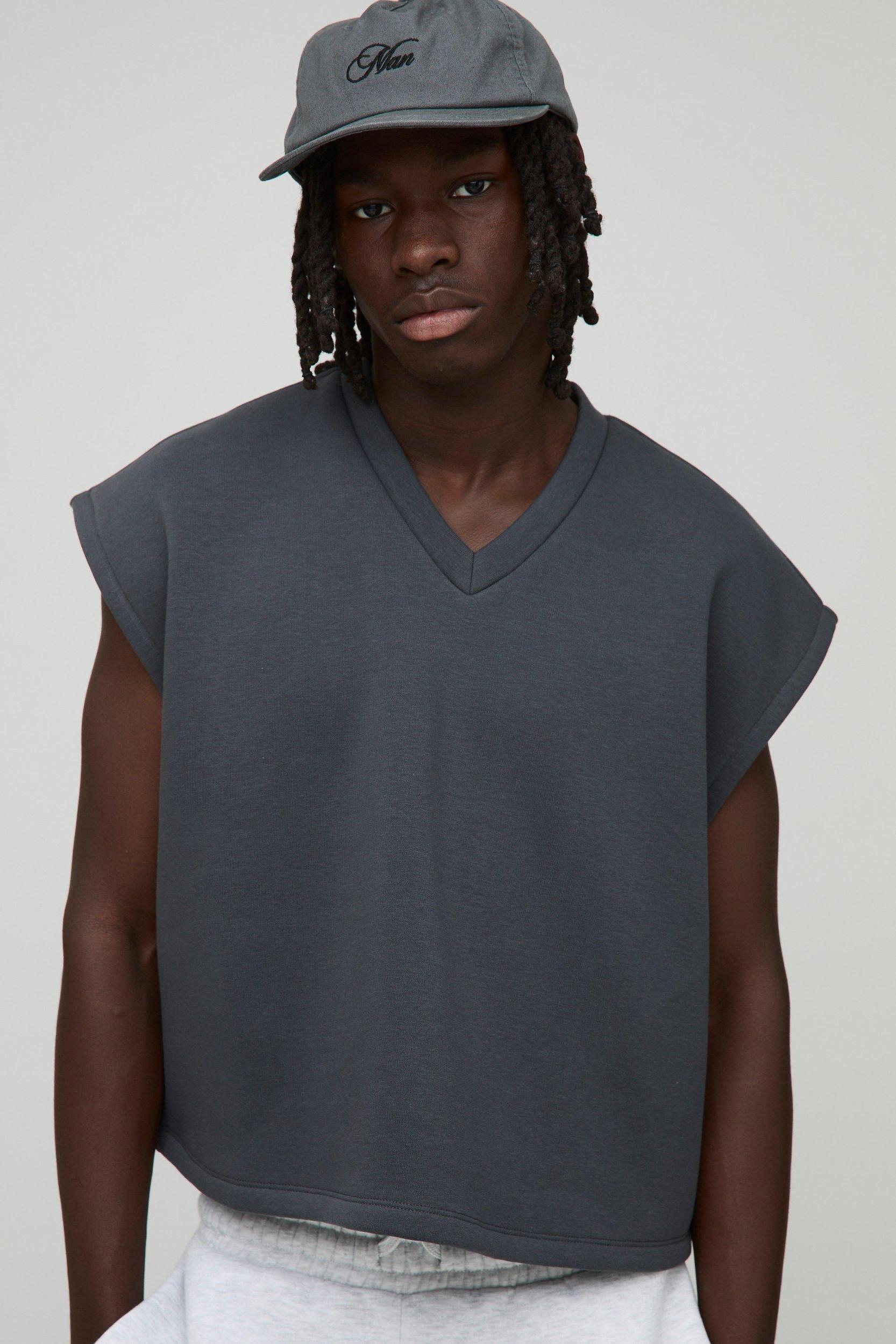 Oversized Boxy Cropped V Neck Sweatshirt Vest | boohooMAN USA
