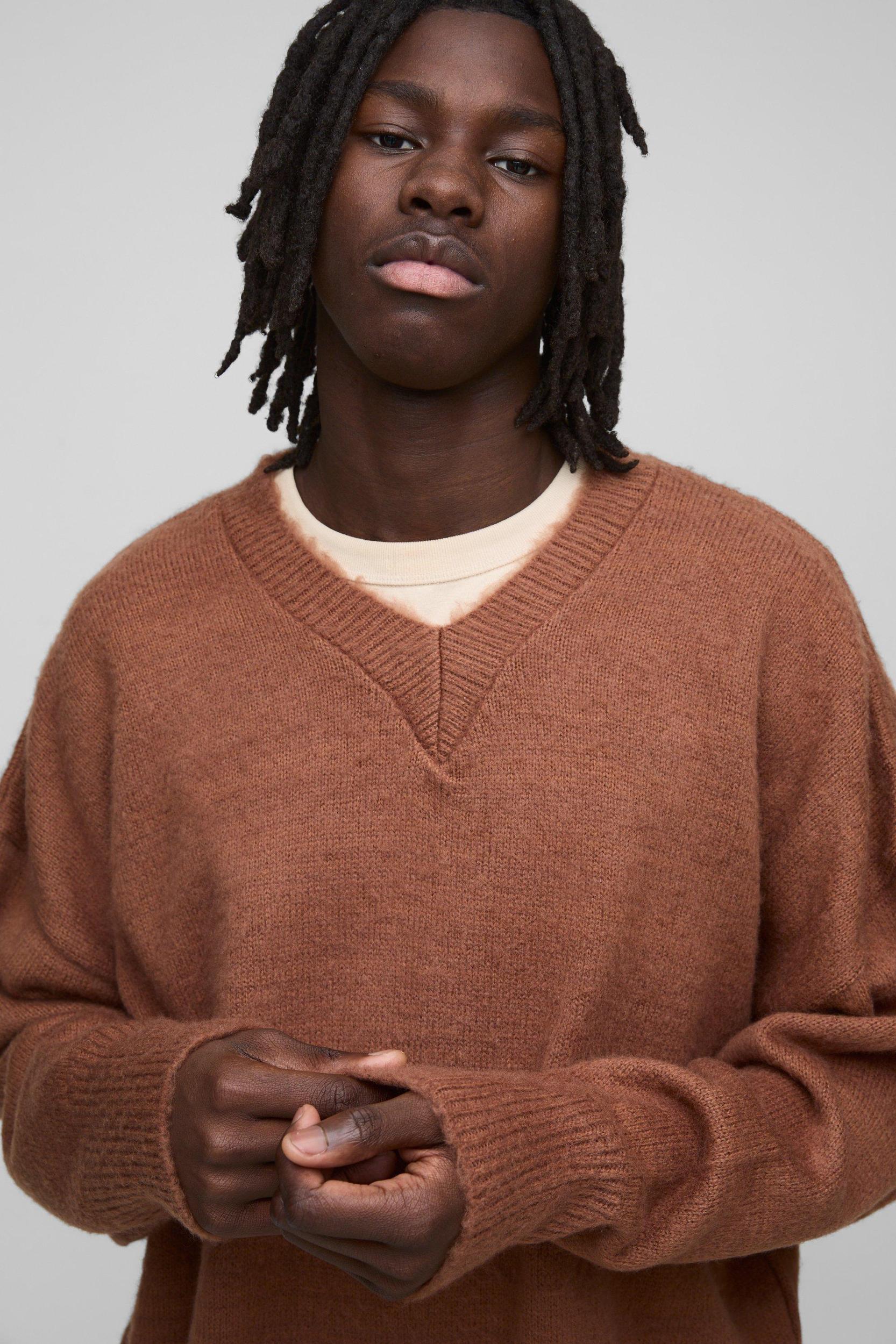 To peep, or not to peep? That is the question. Everyone needs a few basic jumpers for when the weather starts cooling down, and you should always have one or two ready to go for those last-minute dinner or movie plans. Mix things up by adding a v neck sweater or two, which you can wear over a smart button-down shirt with a collar or a crew neck tee peeping through. Go for a football or graphic print if you're feeling outgoing, or try a ribbed or brushed knit for texture. Wear it with straight cut jeans or chinos and you're good to go, or throw over a mid-length collared overcoat to fancy it up a bit.Style: JumperDesign: FluffyFabric: AcrylicDetail: PlainLength: RegularNeckline: V NeckSleeve Length: Long Sleeve