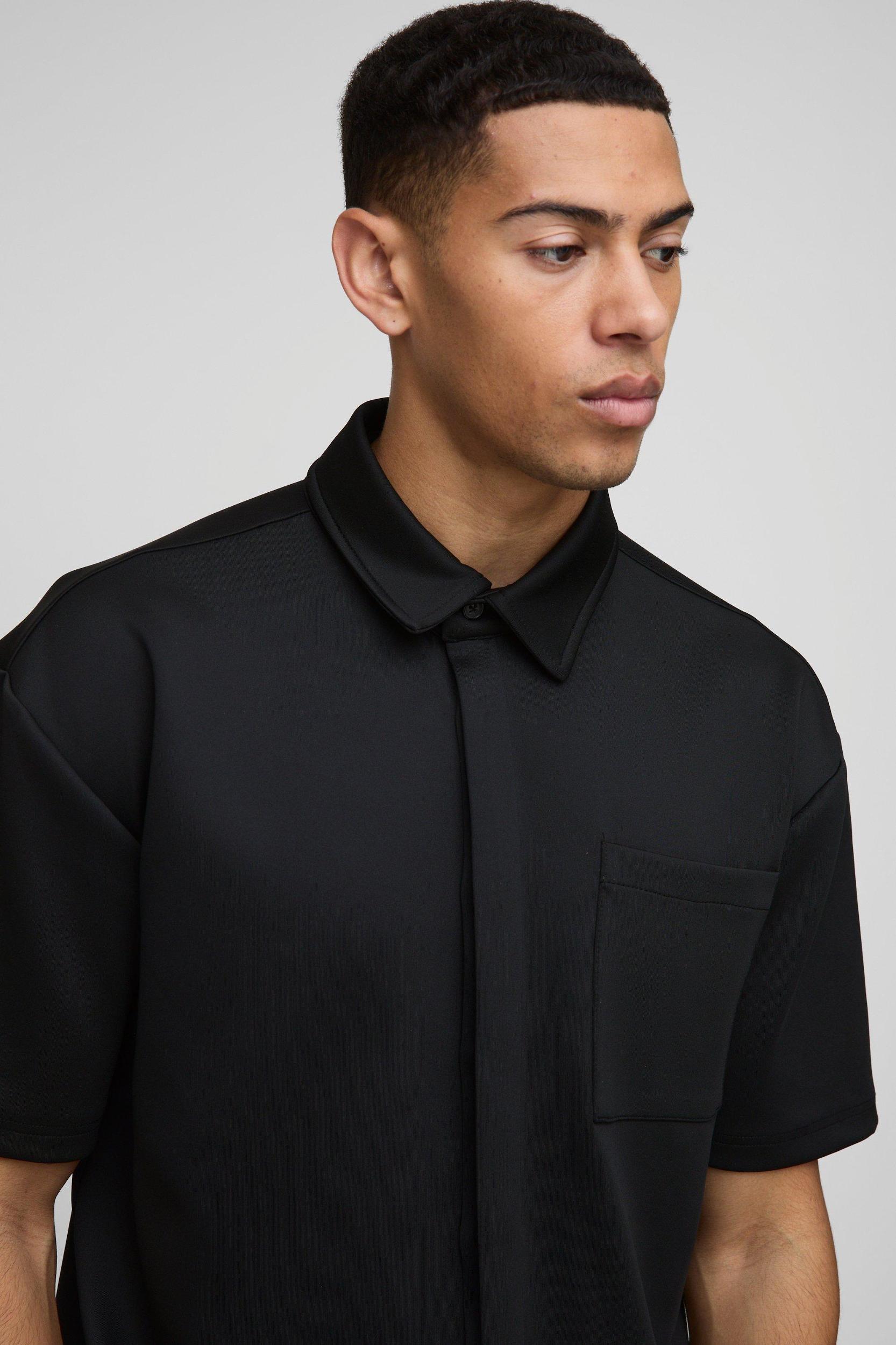 Oversized Scuba Concealed Placket Shirt | boohooMAN USA