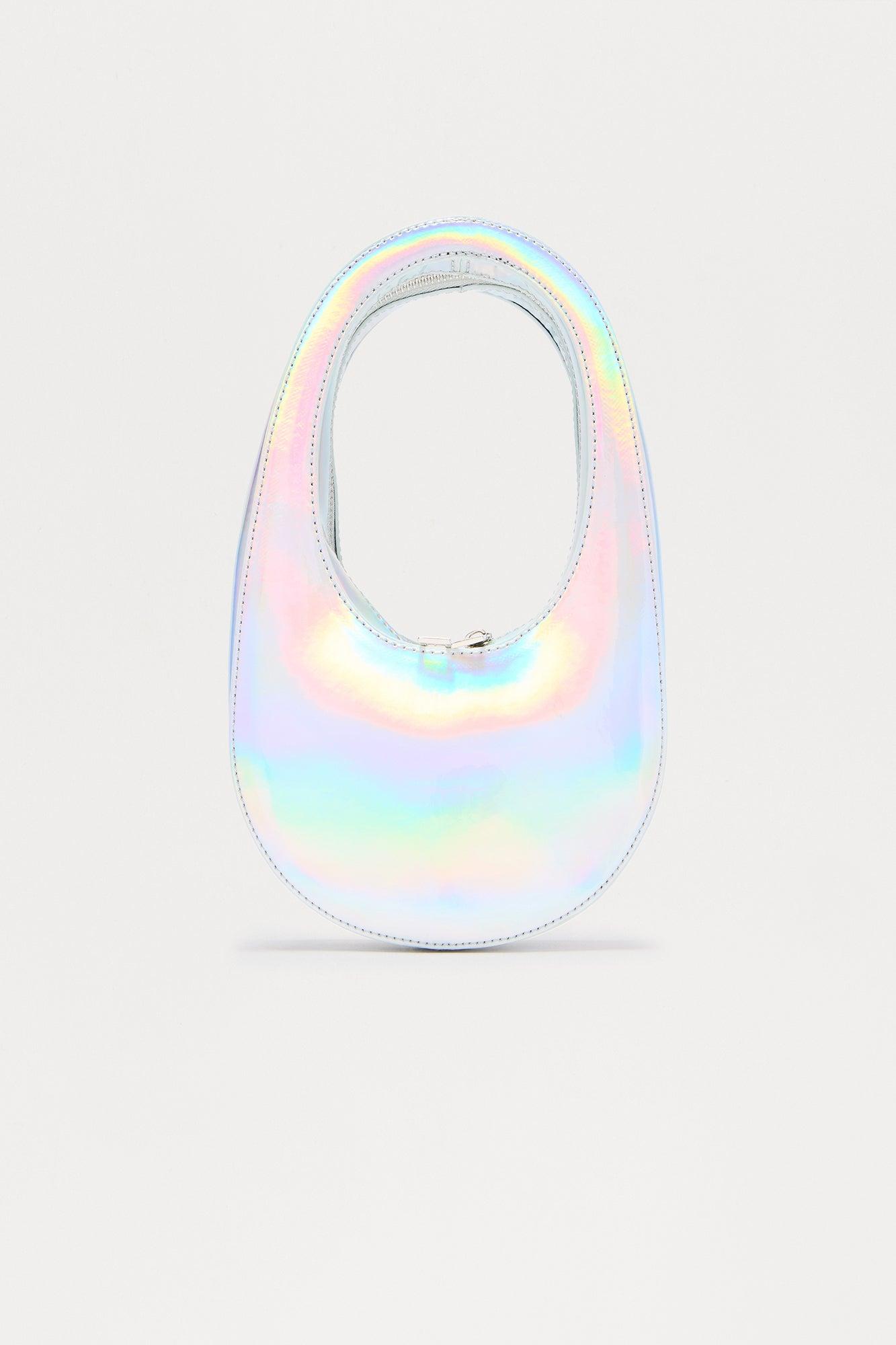 Available In Black And Silver. Satchel Handbag Zipper Wraps Around Entire Handle 16x11x6 (cm) Oval Shape Structured Metallic Finish Patent Leather Imported California Proposition 65WARNING: Cancer and Reproductive Harm - www.P65Warnings.ca.gov.