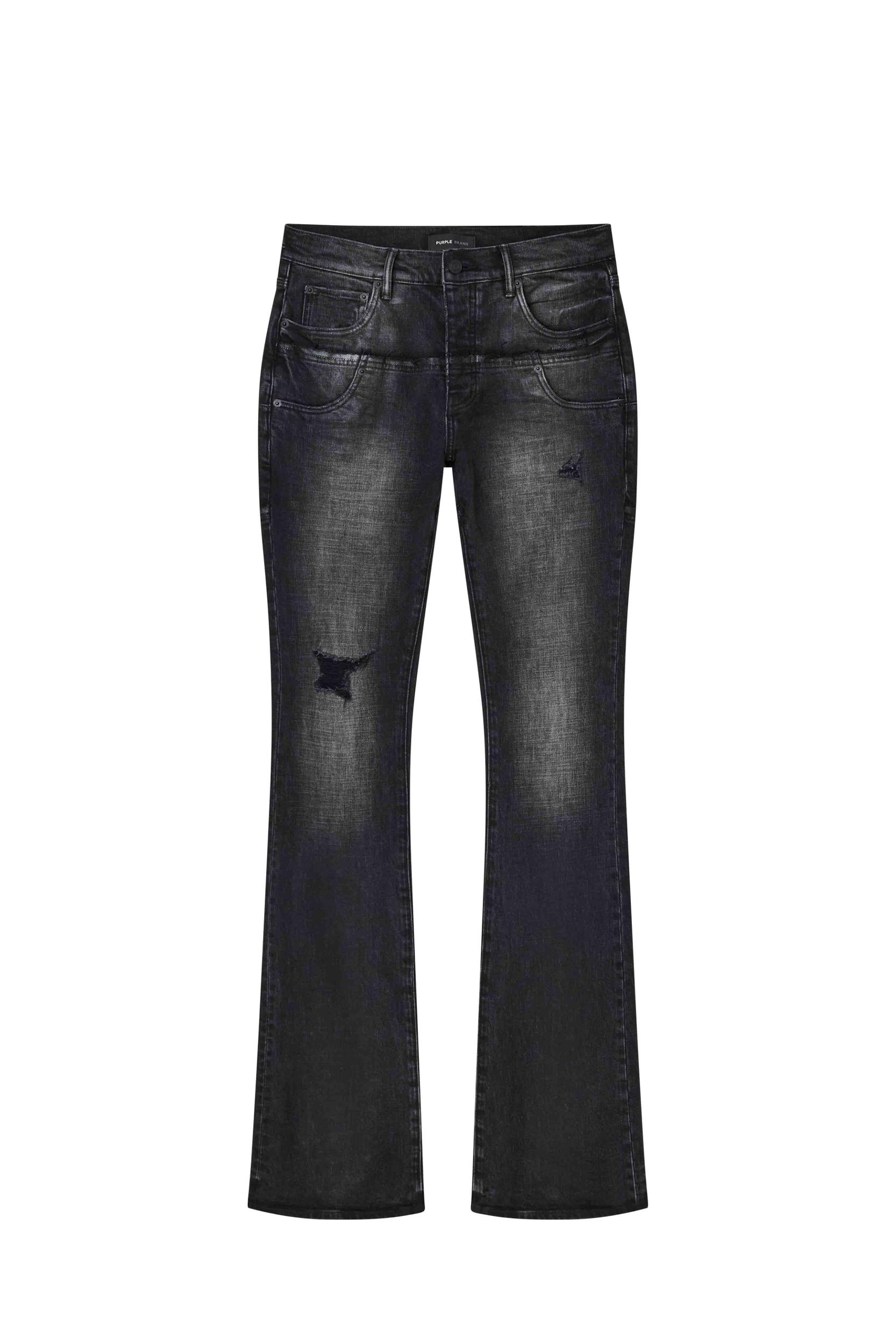 Our P072 is a low-rise men’s jean crafted from premium black stretch denim with a coated finish. The style is cut slim through the thigh with an extra-long flared hem and features a double waist, detailed with real and faux pockets, a button-fly closure and reinforced belt loops as well as hidden rivets and an inner lining on the back pockets for durability. A custom Purple cowhide leather patch, a back pocket flasher and a logo hangtag lend signature branding. Spring Summer 2025 White Label Premium stretch denim - 98% Cotton / 2% Lycra Includes signature Purple hangtag and branded leather patch on back Lined back pockets and yoke for comfort and to help retain shape with wear Back pockets feature subtle bar-tack stitching and hidden rivets for added durability Dart between side seam & back pocket to enhance fit Belt loops and front pockets reinforced for durability Button fly All Purple jeans feature unique washes and dye methods and are finished individually by hand - no two pieces are the same. Each jean is packaged and secured with ties to preserve custom details like our the 3D wrinkle effect or custom paint finishes while shipped. Accessories styled in photo not included.