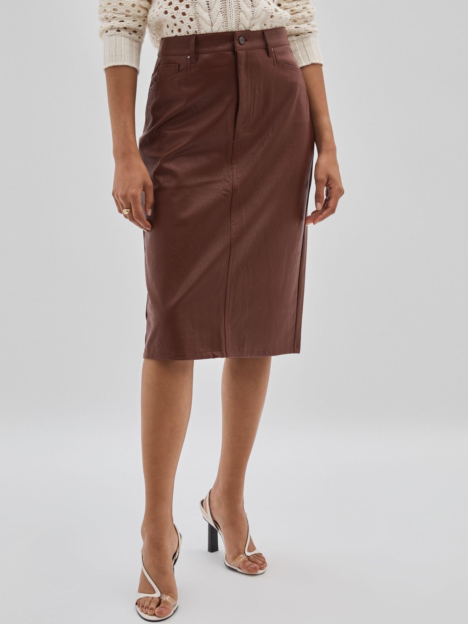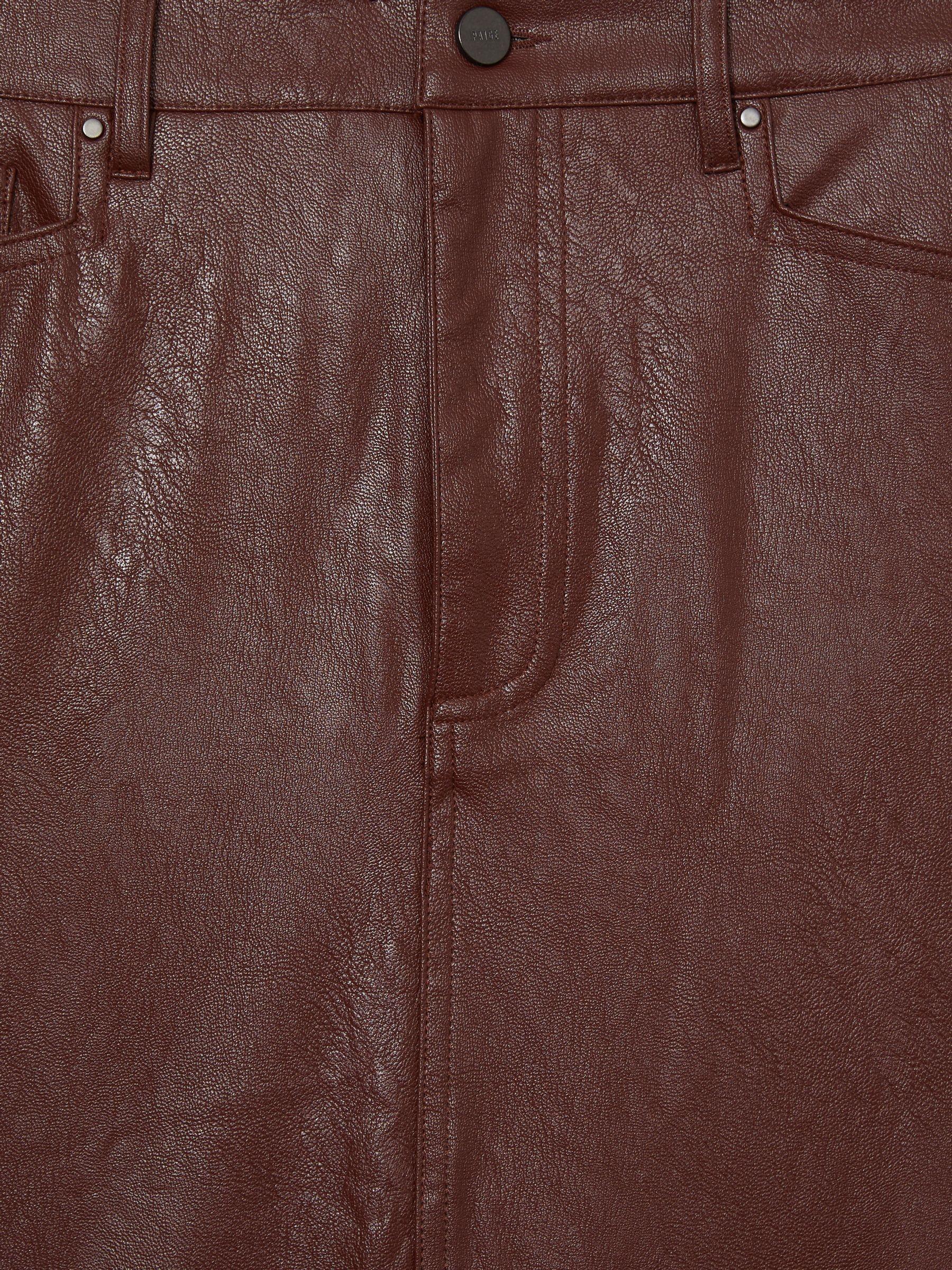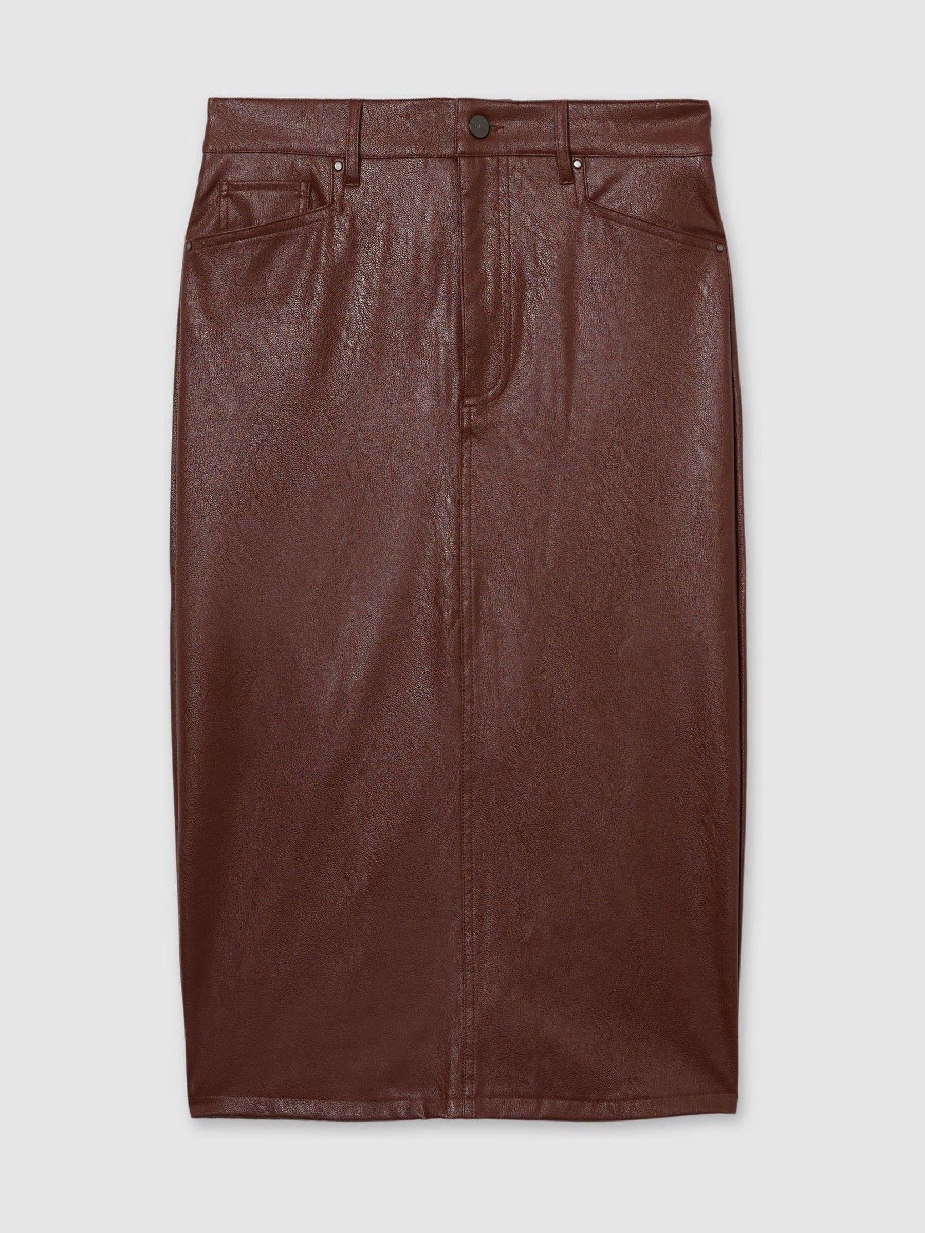 The Siren skirt has frogmouth pockets that pay homage to classic workwear styles. Crafted from soft faux leather to a midi silhouette, it s eased with a back slit and lined in smooth satin. Faux leather. Belt-looped waistband. Frogmouth slip pockets. Midi hem. Back patch pockets. Back-hem slit. Satin lining. Concealed front zip. Paige applies fabric technology, expert fit know-how and a Los Angeles style sensibility to create unique jeans.