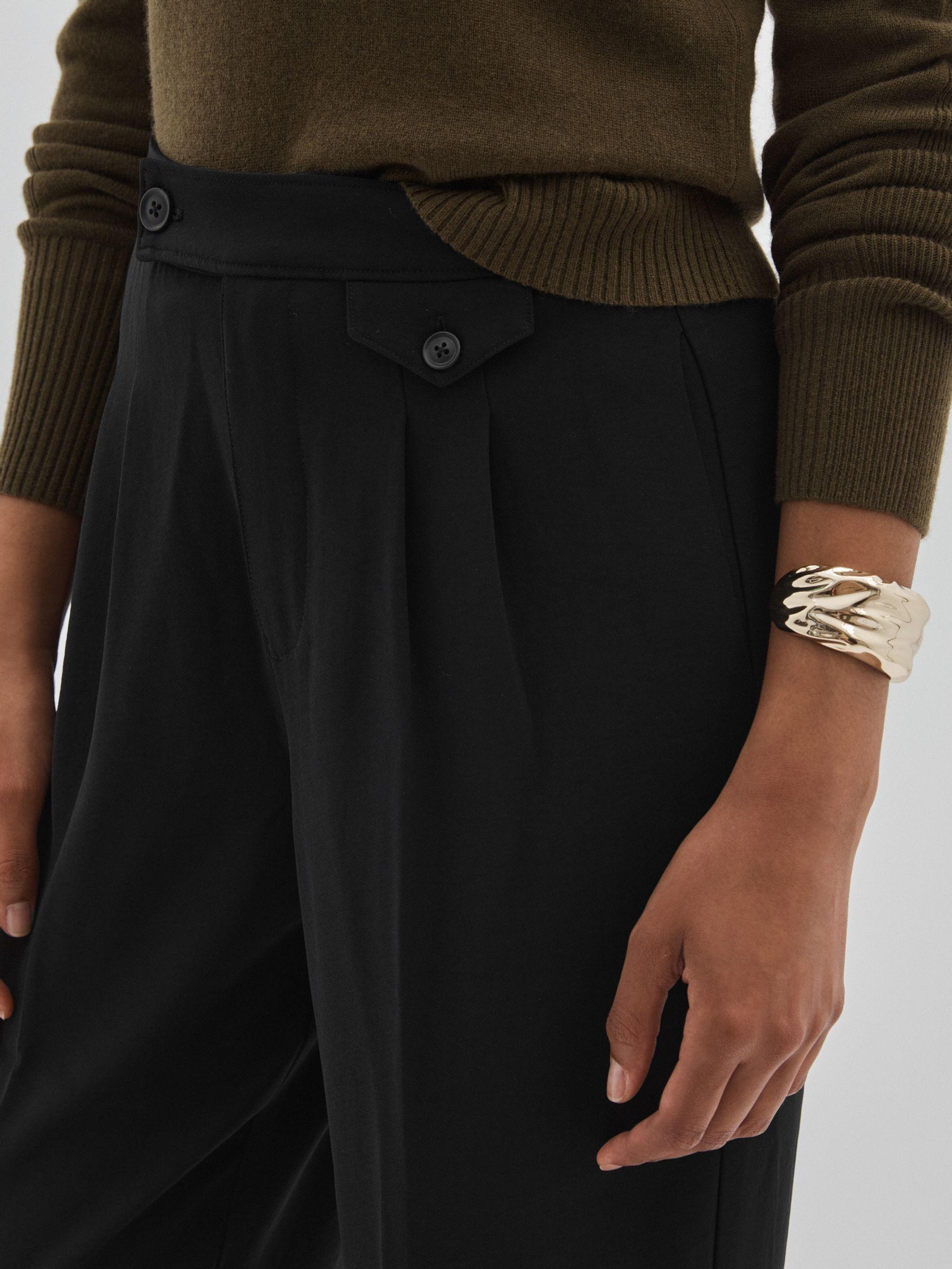 The Brigida trousers are crafted from smooth twill and eased by crisp pleats by the high-rise waistband. Accented with a ticket pocket for timeless air, they have straight legs with pressed creases and slip pockets. Mid-weight twill. High-rise waist. Ticket pocket. Slip pockets. Straight legs. Concealed front zip. Paige applies fabric technology, expert fit know-how and a Los Angeles style sensibility to create unique jeans.