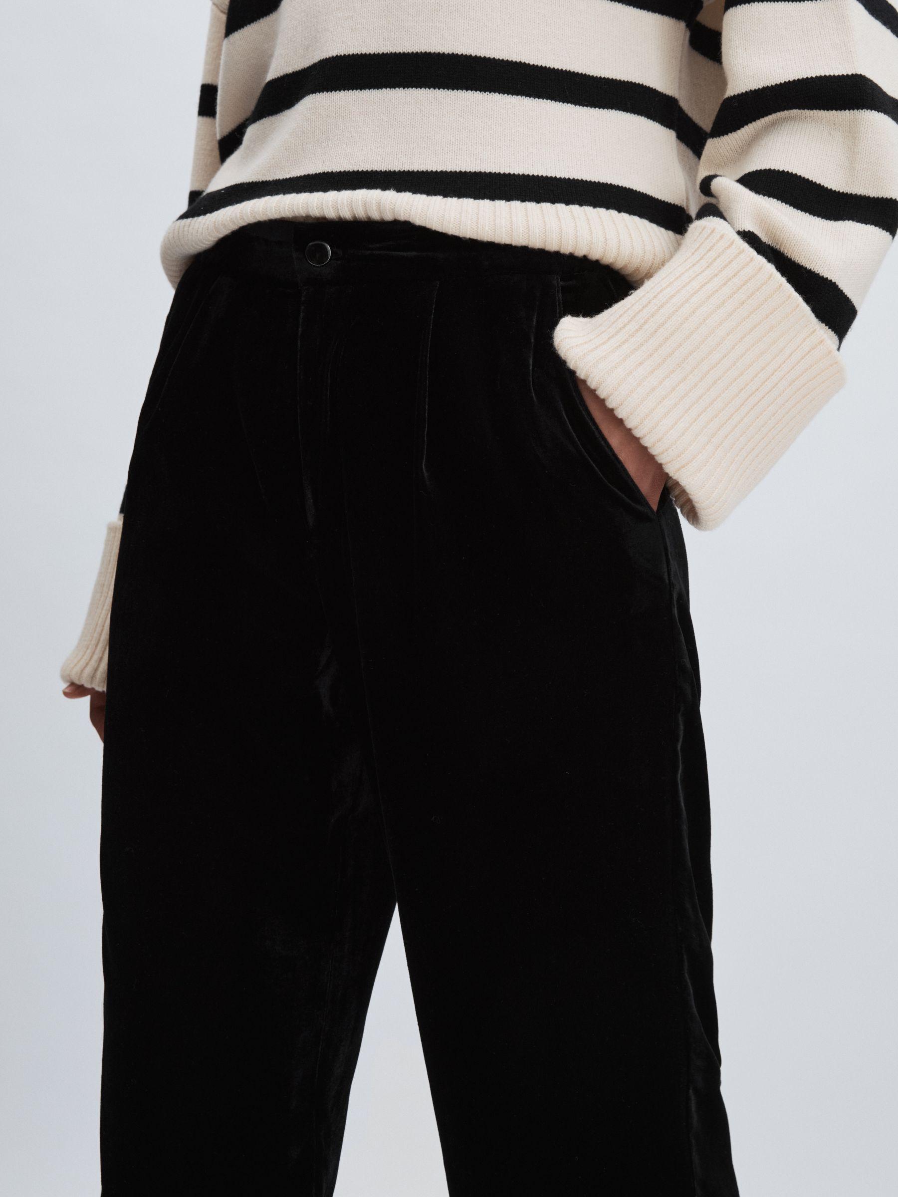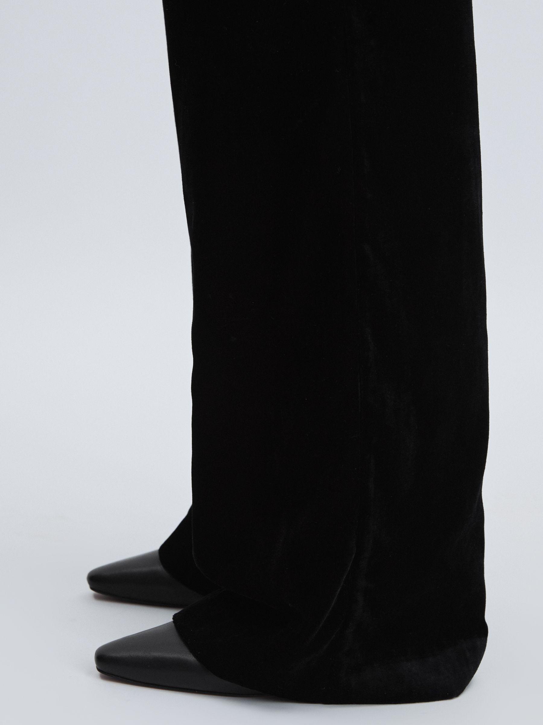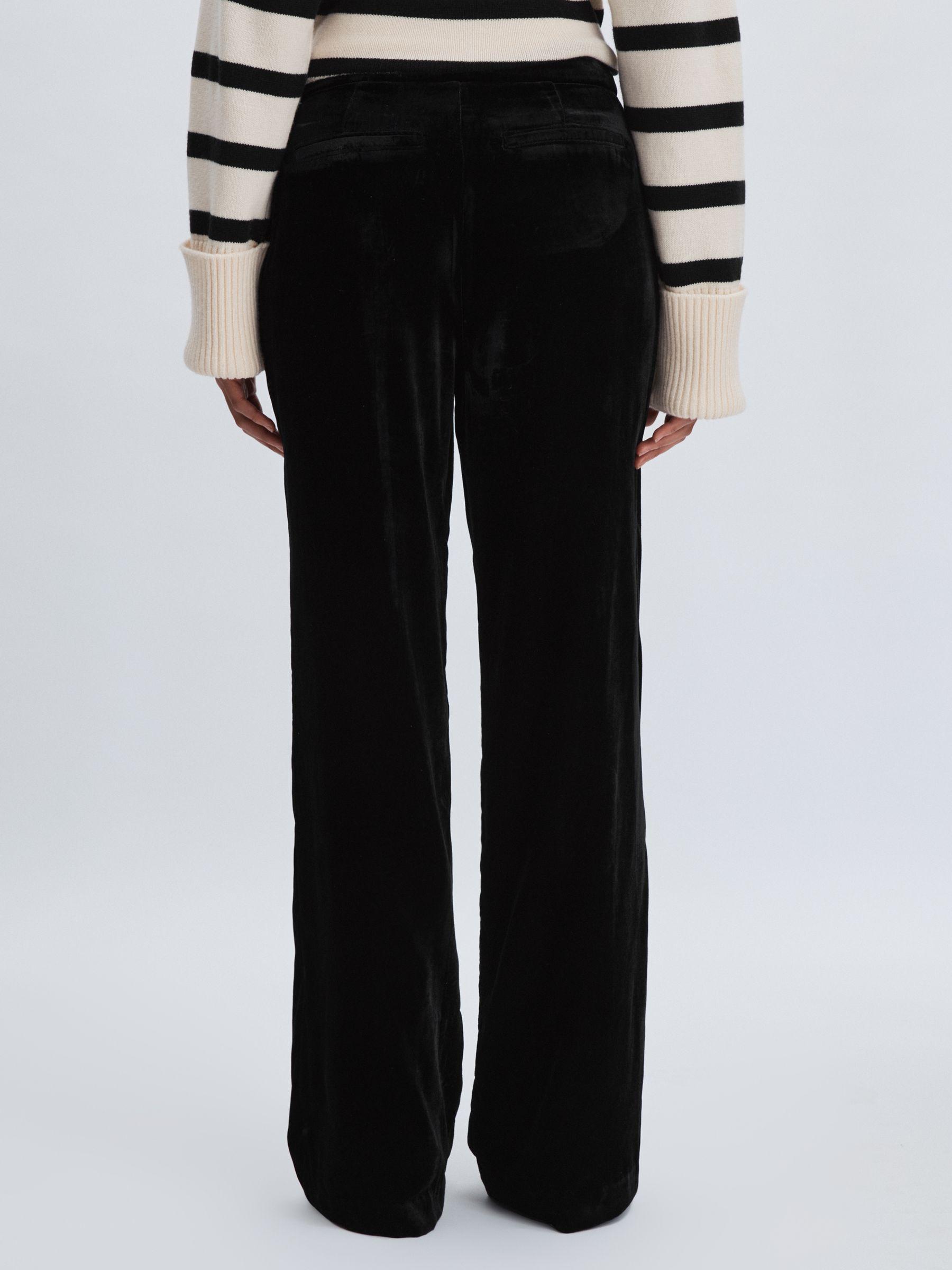 The Kara trousers are cut to a relaxed wide leg from drapey black velvet. They sit high on the waist and fasten with a classic button and zip. Velvet Wide leg. High rise. Side slip pockets. Welt pockets to reverse. Front button and zip. Paige applies fabric technology, expert fit know-how and a Los Angeles style sensibility to create unique denim wear and lifestyle garments with enduring appeal.