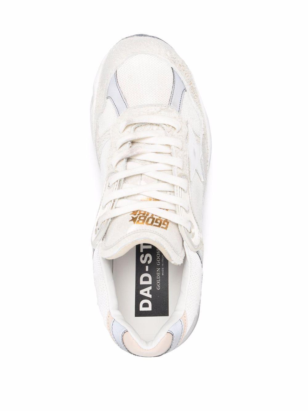 white leather panelled design front lace-up fastening flat rubber sole logo patch at the tongue