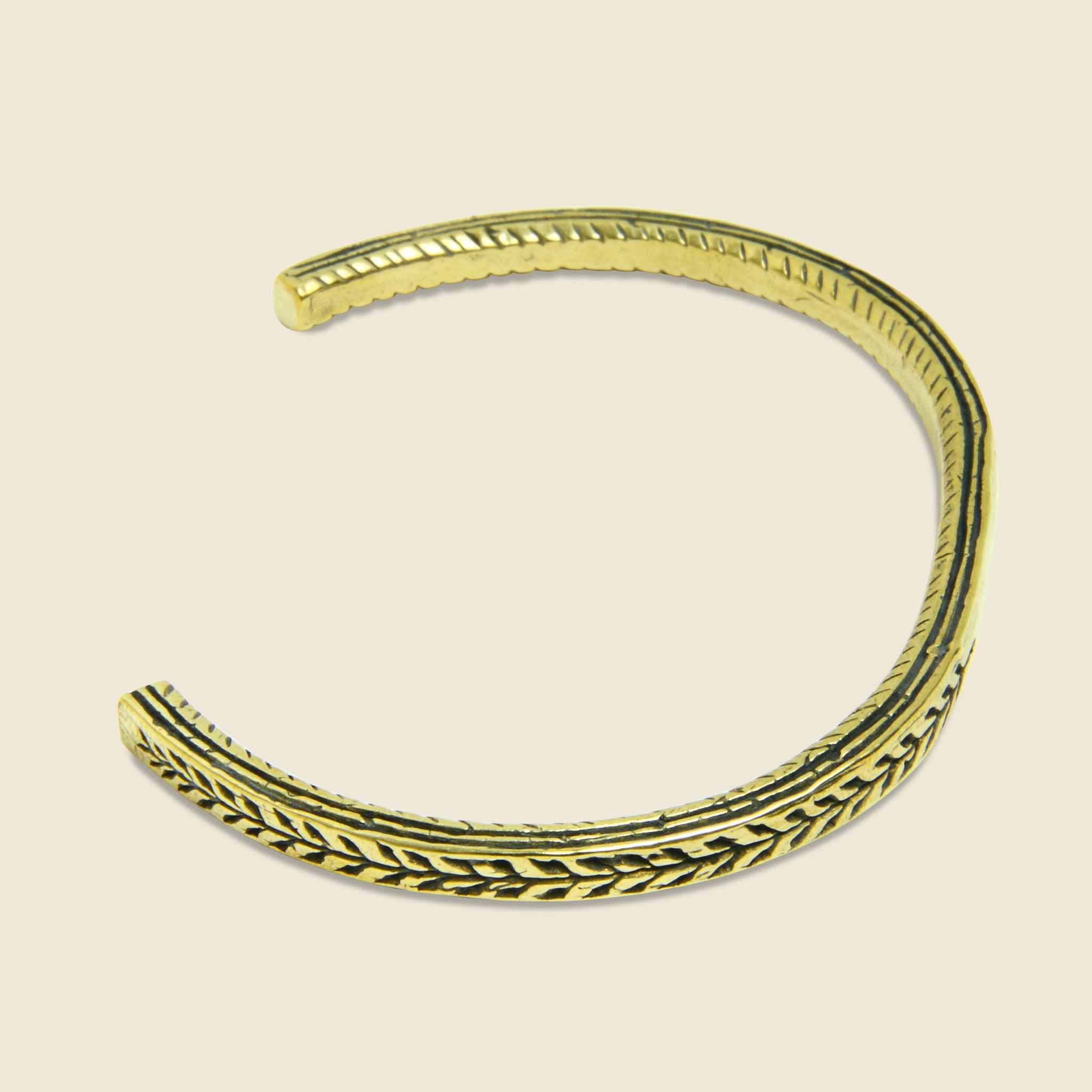 The Pantheon Leaf Stamp Cuff from LHN is hand carved in Brooklyn, New York. Solid brass cuff engraved with a classic olive branch pattern. LHN Jewelry is dedicated to designing hand crafted, artful pieces of jewelry and accessories. The designs are inspired by antiquity and historic artifacts. All the pieces are proudly made by hand in Brooklyn, New York Hand carved, the cuff is engraved with a classic olive branch pattern The cuff is aprox 1/8 inch wide & comfortable to wear Inspired by antiquity and historic artifacts Made in Brooklyn, New York Materials: 100% brass