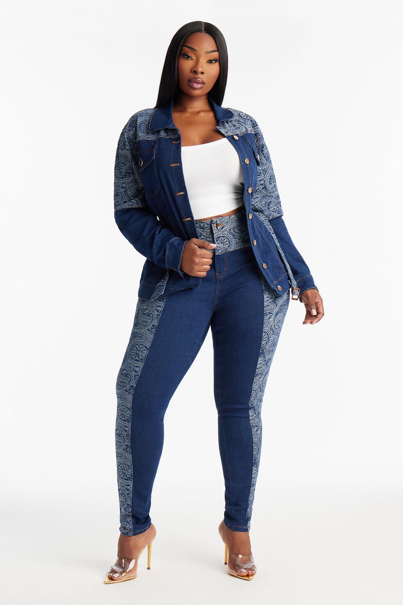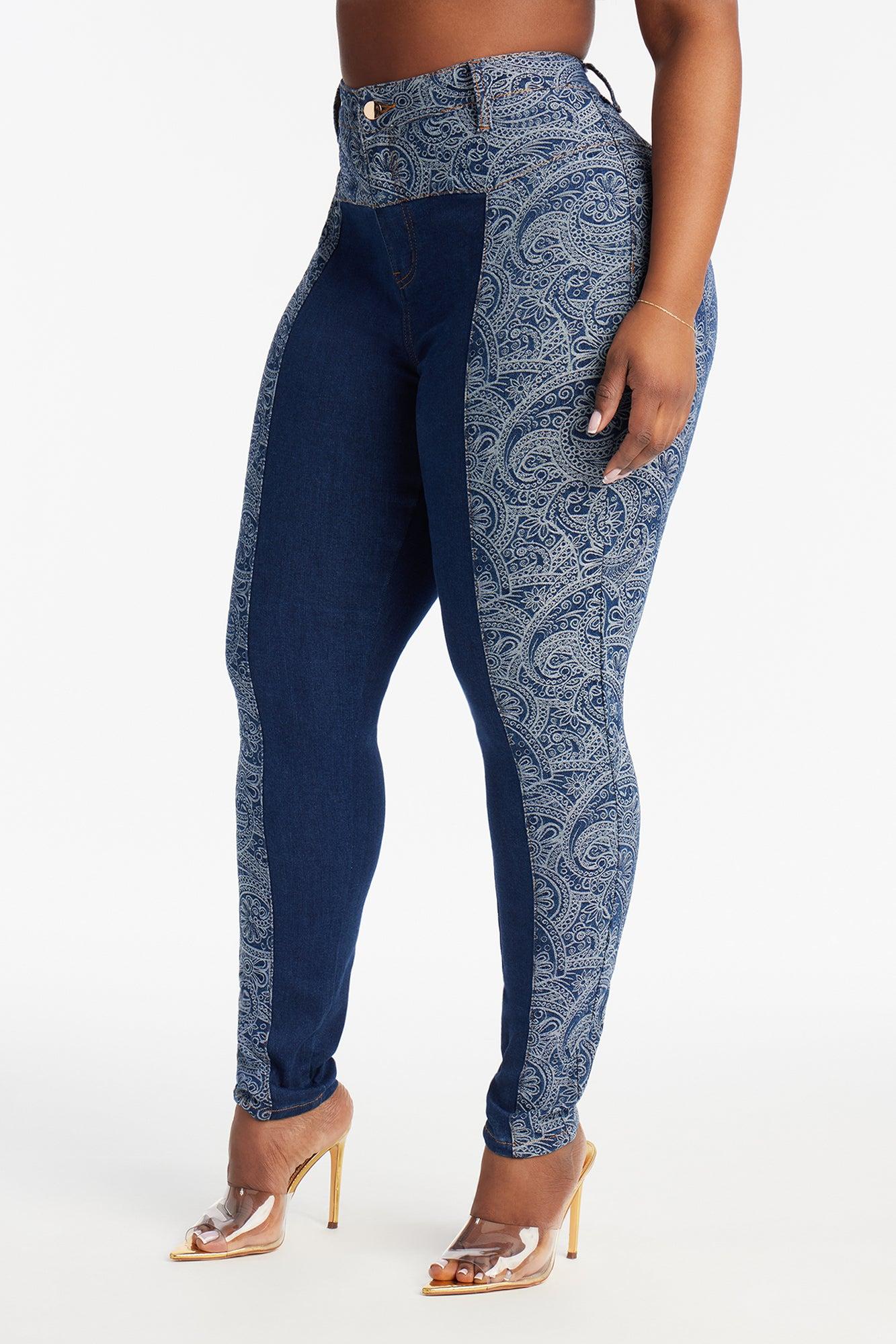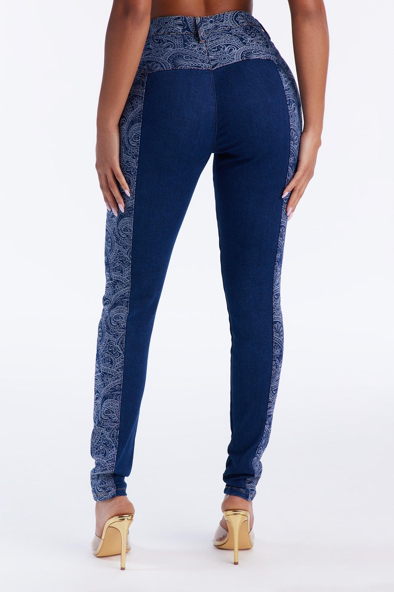 Available In Dark Wash. Pair With Parker Paisley Denim Jacket Skinny Jean Paisley Pattern 10.5" RIse 30" Inseam Medium Stretch Self: 70% Cotton 28% Polyester 2% Spandex Contrast: 60% Cotton 29% Polyester 10% Viscose 1% Spandex Imported California Proposition 65WARNING: Cancer and Reproductive Harm - www.P65Warnings.ca.gov.