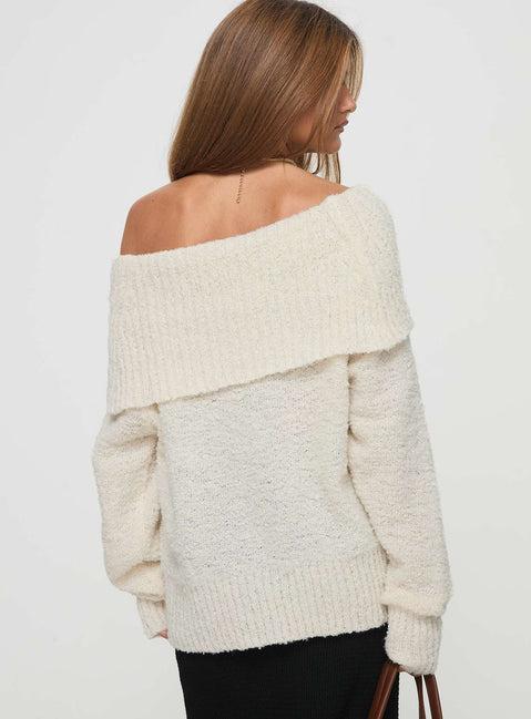 Parkley Boucle Off The Shoulder Sweater Cream