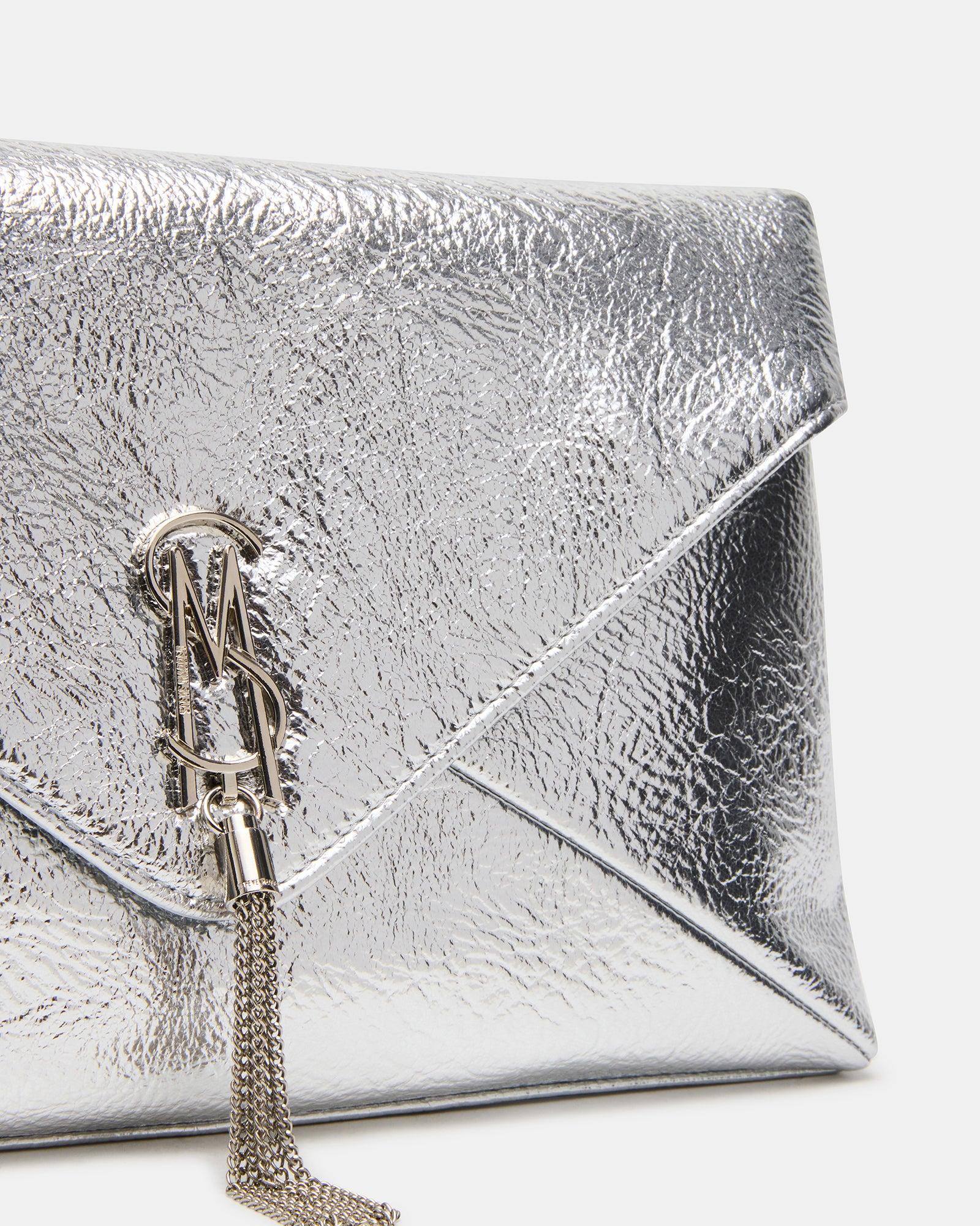 This stylish clutch handbag, the PARTAY bag, features a soft mag snap closure, back zipper wall, and slip pocket. Its tassel logo adds a touch of elegance while its crinkle look gives it a unique texture. Perfect for any occasion, this bag also comfortably fits large phones. Oversized Envelope clutch handbag Mag snap closure Tassel detail on logo Fits daily essentials, including a phone, small wallet, keys, small headphones, and compact makeup Attachable crossbody strap Crossbody strap: 23-24 inches 7.5in H x 11.5in W x 2in D Synthetic materials Duster bag included Imported