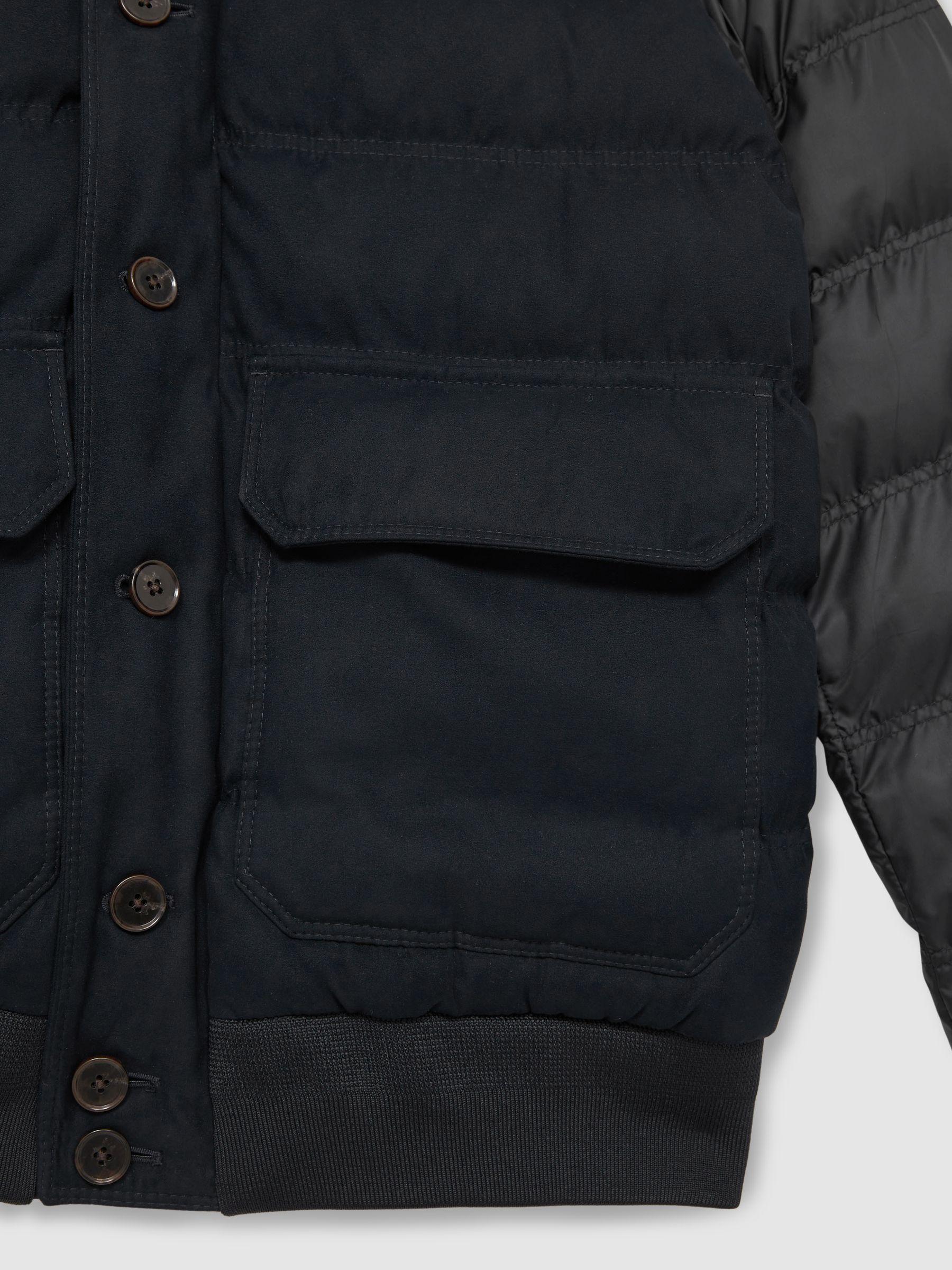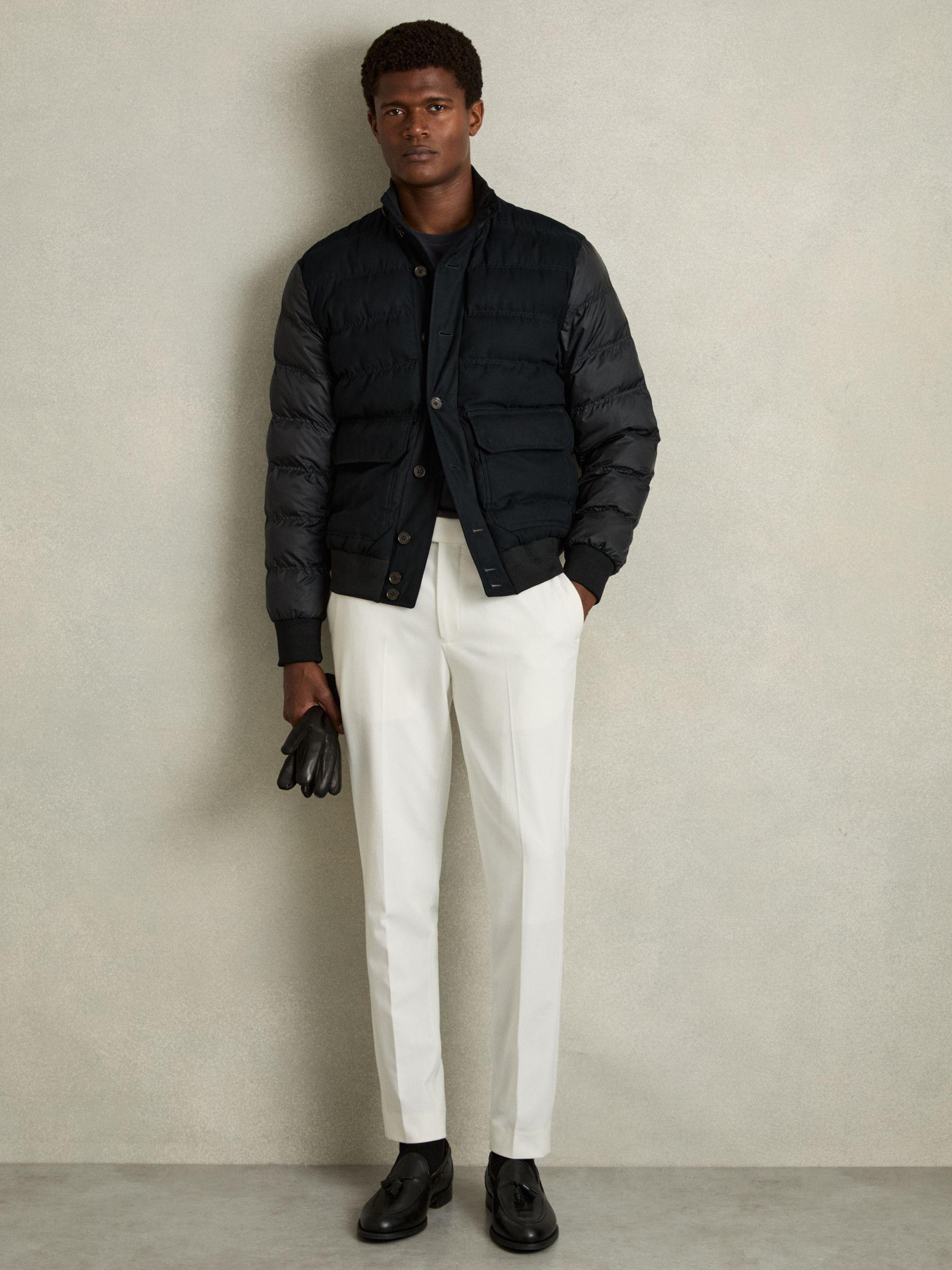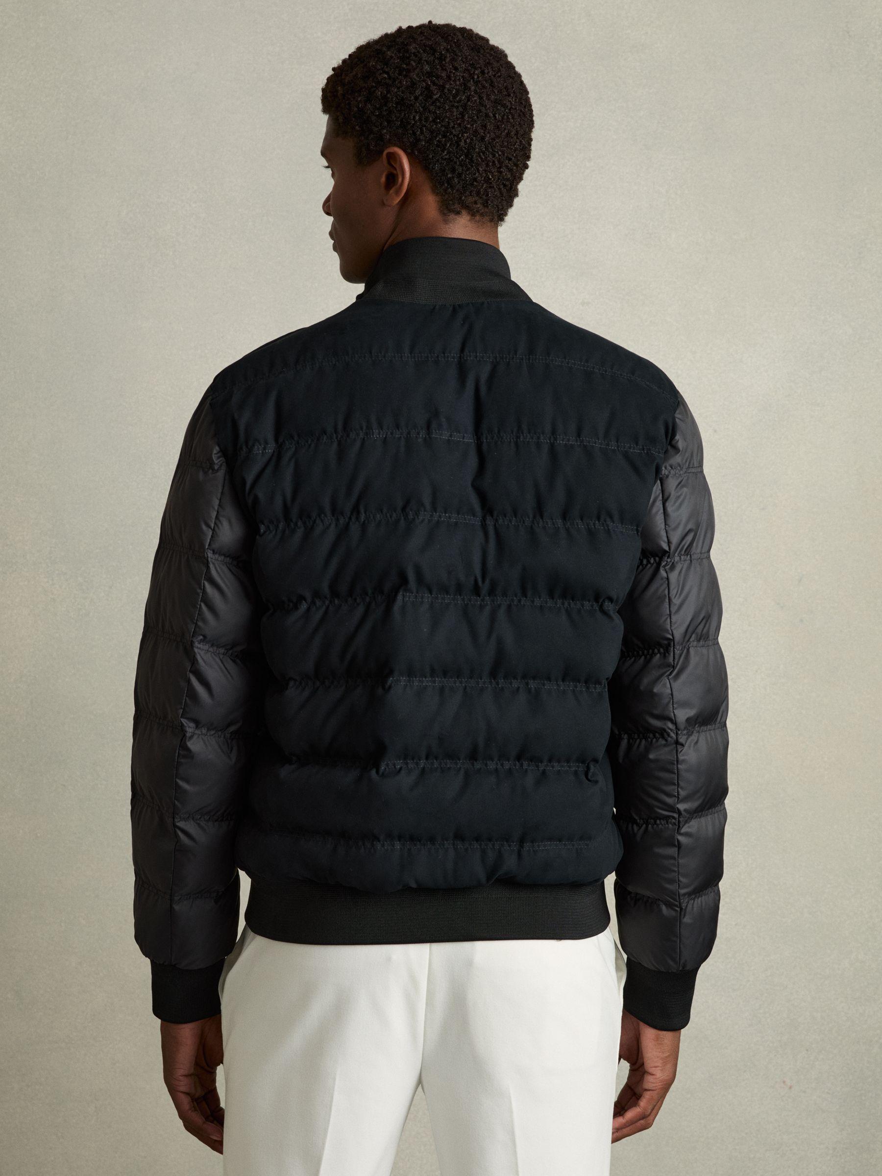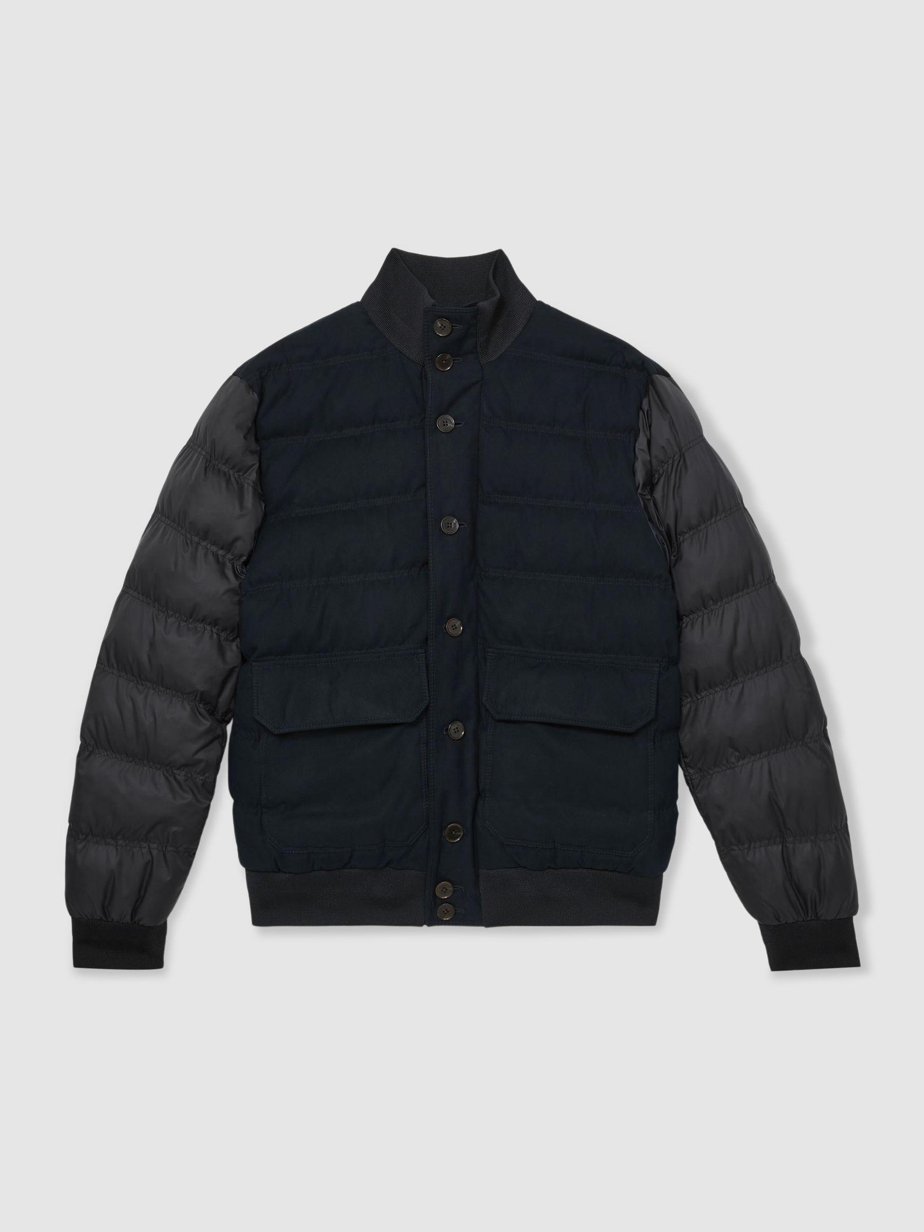 Durable Alcantara fabric brings a sporty verve to the Marsian jacket, which is quilted for warmth on cooler days. Accented with jersey for a close fit at the neck, cuffs and hem, it’s patched with pockets and secures with front buttons. Lightweight Alcantara fabric. Jersey collar, cuffs and hem. Patch pockets. Two interior pockets. Front buttons.