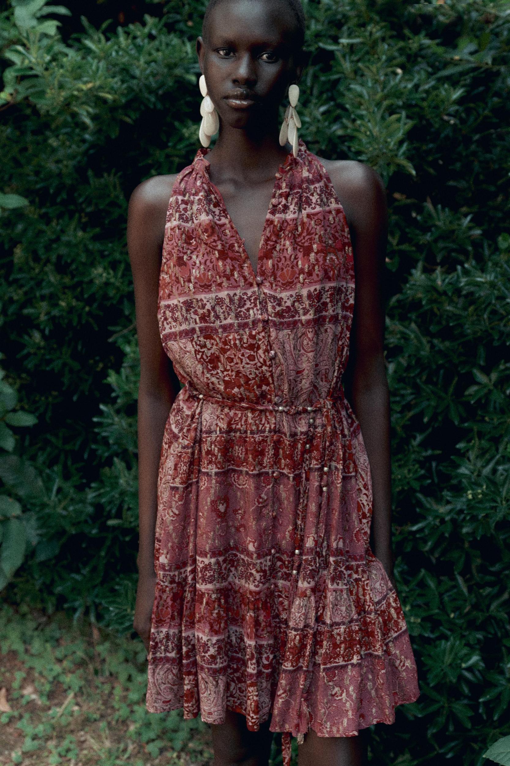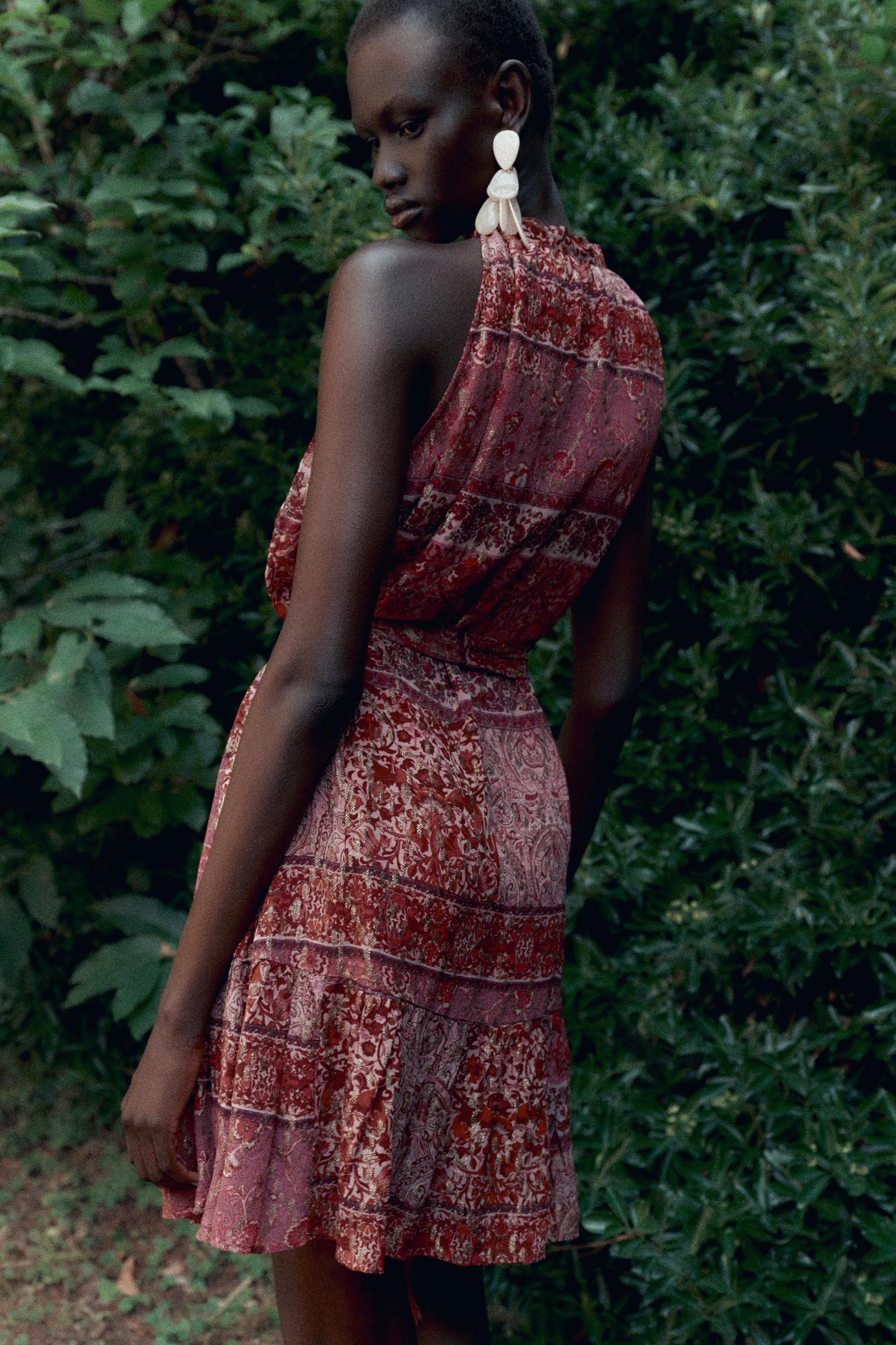 PATCHWORK PRINT MINI DRESS WITH BELT
