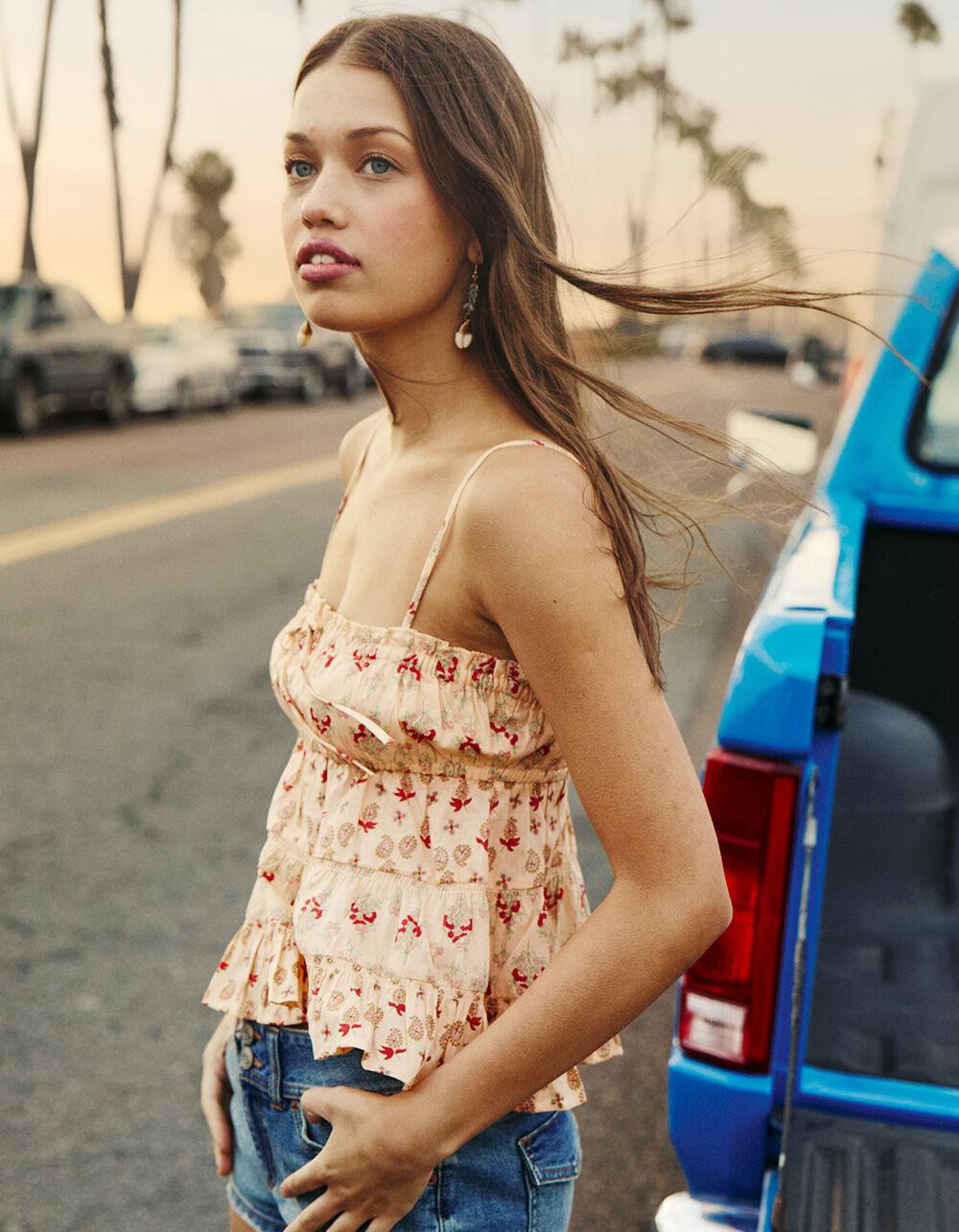 Patrons Of Peace Stassi Top. Bring playful charm to your warm-weather wardrobe with the Patrons Of Peace Stassi Top. This breezy, sleeveless top features a flattering 3-tiered design with soft gathering and elastic at each tier for a relaxed, comfortable fit. A sweet bow detail at the center neckline adds a feminine touch, while adjustable shoulder straps let you customize the fit just the way you like. Light and easy to wear, the Stassi Top pairs perfectly with everything from denim shorts to flowy skirts for an effortlessly cute look. 100% Cotton. Hand wash. Imported.