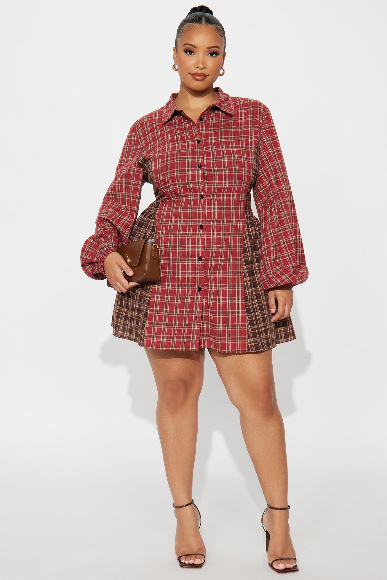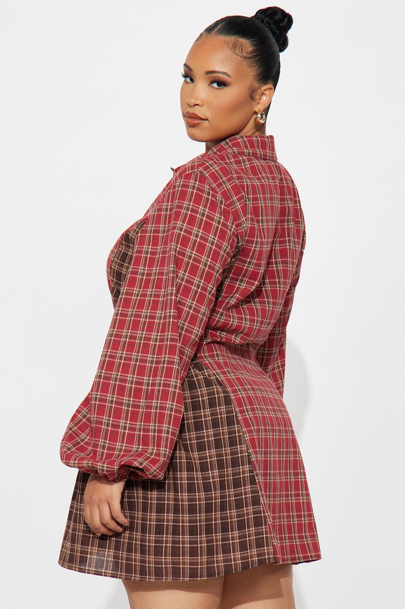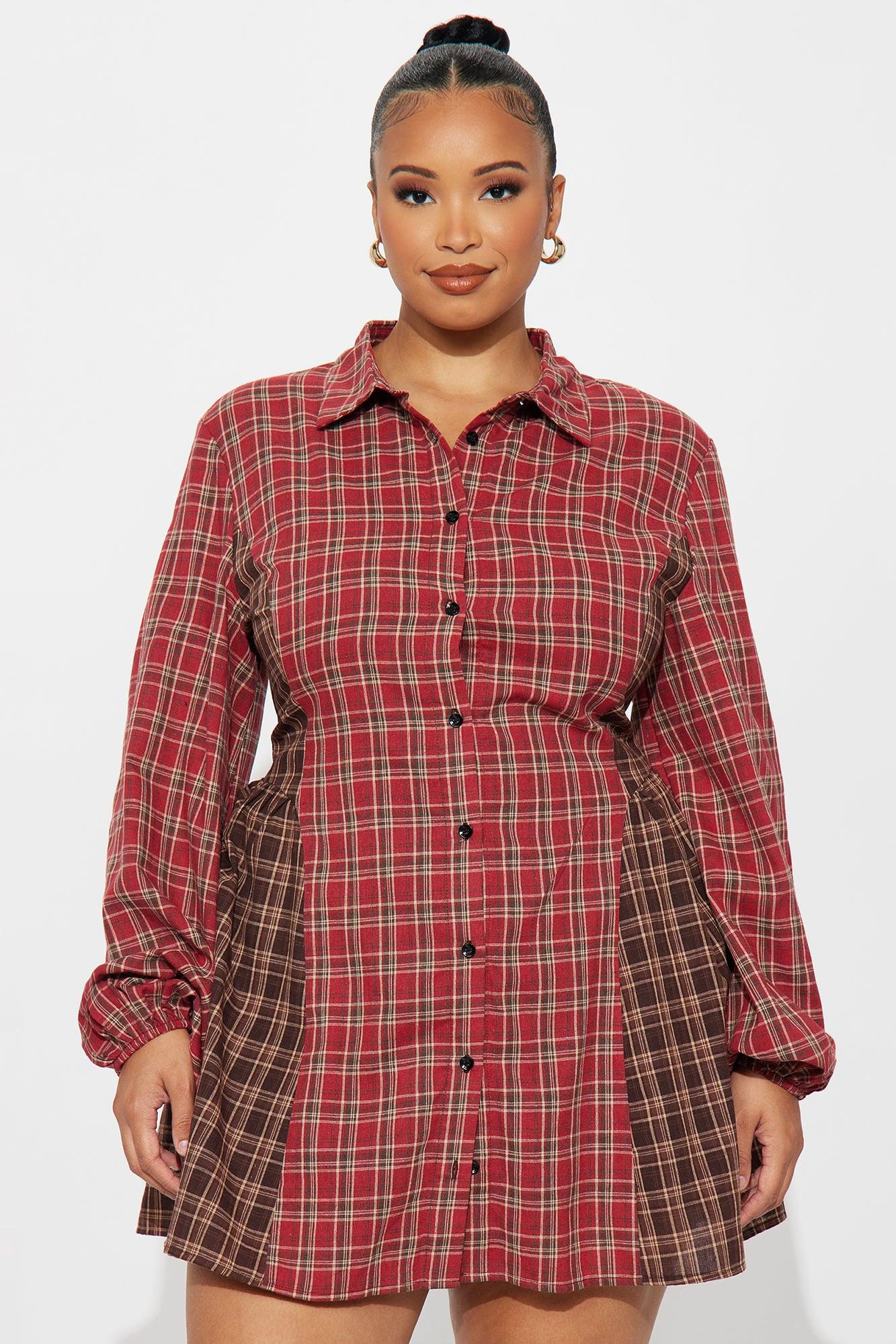 Payton Button Up Flannel Mini Dress - Red/combo Female