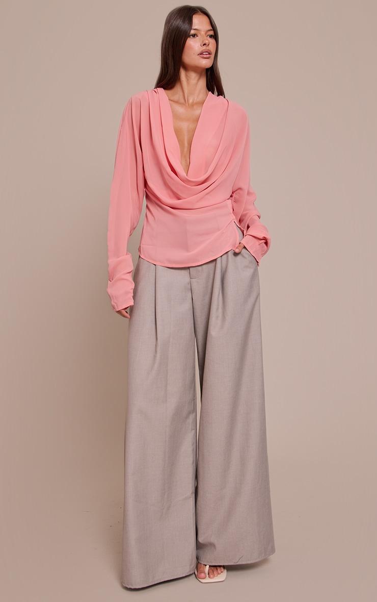 Tap into your feminine energy in this peach chiffon cowl neck long sleeve blouse. Made from peach toned chiffon, this blouse has a flattering cowl neckline and long sleeves. Add it to relaxed fit blue jeans and slip on mule heels for a daytime date look.Length approx 48.5cm/19inch (Based on sample size US 4)Model wears size UK 8/ EU 36/ AUS 8/ US 4Model Height - 5ft 9inchp]:!mb-4inch>Category: TopsProduct type: BlouseColor: PeachMaterial: ChiffonDesign: PlainNeckline: CowlSleeves: LongOccasion: Evening