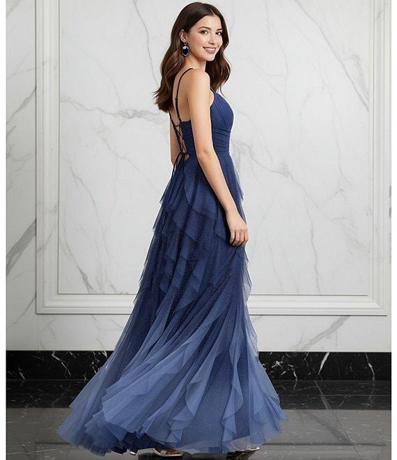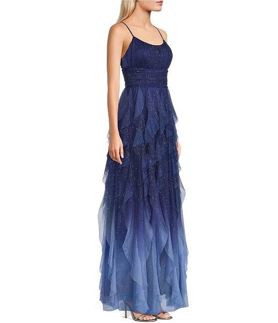 Pear Culture Glitter Ombre Corkscrew Tulle Long Dress