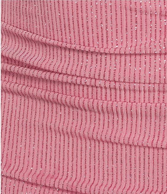 Pear Culture Glitter Slinky Knit Square Neck Ruched Dress