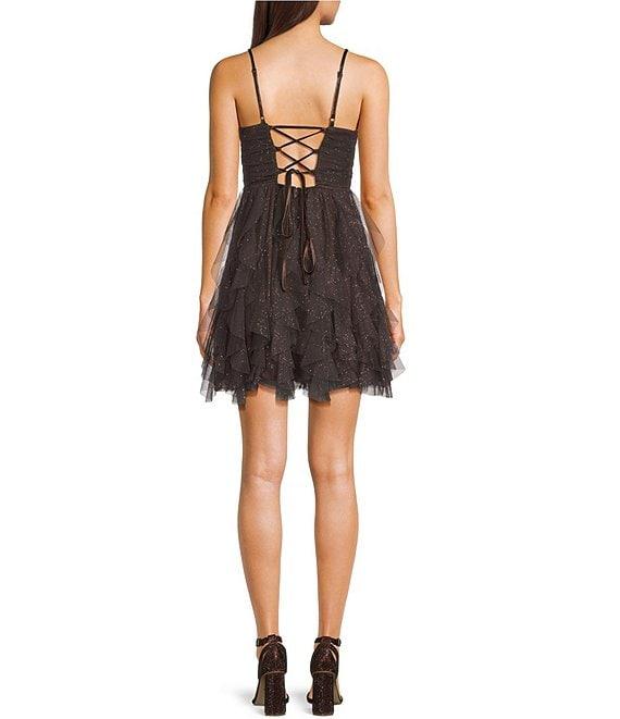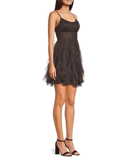 Pear Culture Scoop Neck Lace Up Back Glitter Fit & Flare Mini Dress