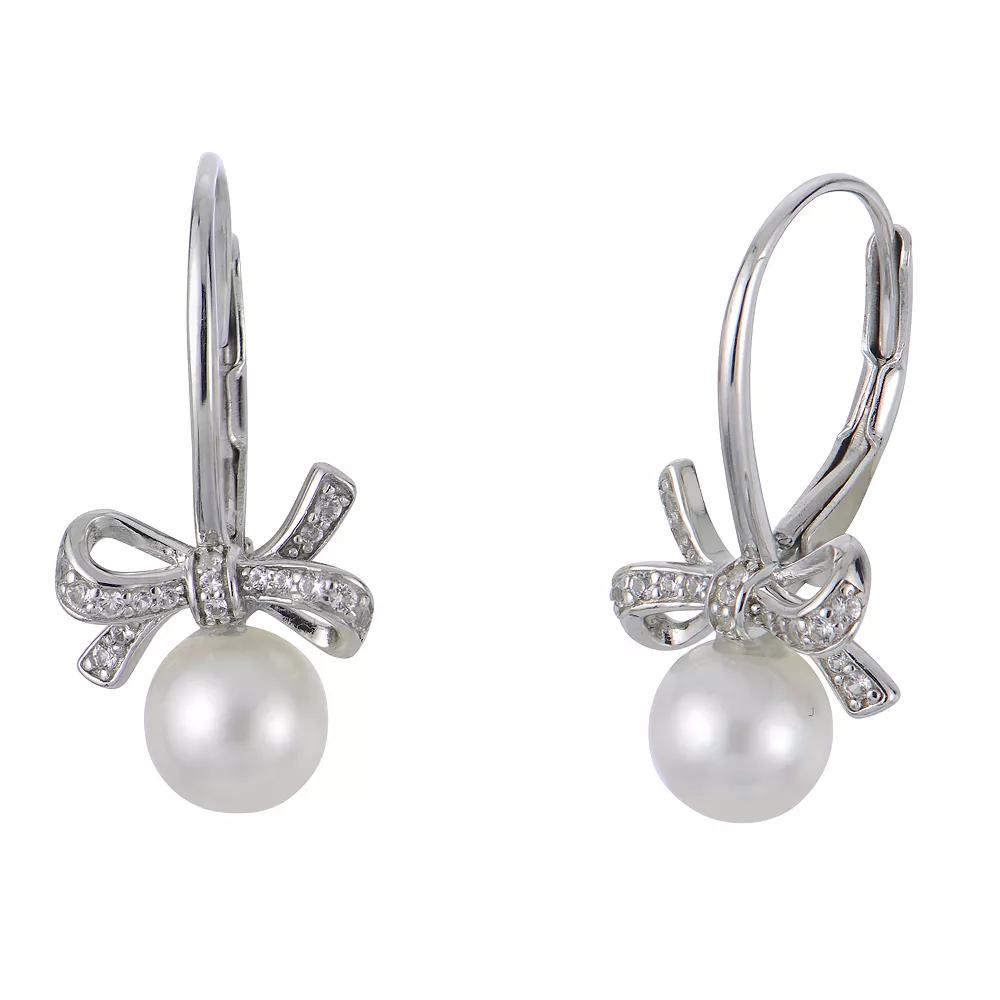 Make a fashion statement with these PearLustre by Imperial Sterling Silver Freshwater Cultured Pearl Lab-Created White Sapphire Bow Earrings. Click on this JEWELRY & WATCHES GUIDE to learn about fit, styles, materials and more! Make a fashion statement with these PearLustre by Imperial Sterling Silver Freshwater Cultured Pearl Lab-Created White Sapphire Bow Earrings. Click on this JEWELRY & WATCHES GUIDE to learn about fit, styles, materials and more! FEATURES Length: 22 mm x 12 mm x 14 mm Closures: leverback Nickel free Metal: sterling silver Plating: rhodium Finish: polished Packaging: boxed ImportedSTONE DETAILS Stone type: lab-created white sapphire Total weight: 1/6 ct. Shape: round Setting: paveCULTURED PEARL DETAILS Type: freshwater Diameter: 6.5-7 mm Shape: round Color: white Gemstones may have been treated to enhance their appearance. Special care may be required. Please visit our Gemstone Treatment & Special Care Guide for more information. Size: One Size. Gender: female. Age Group: adult.