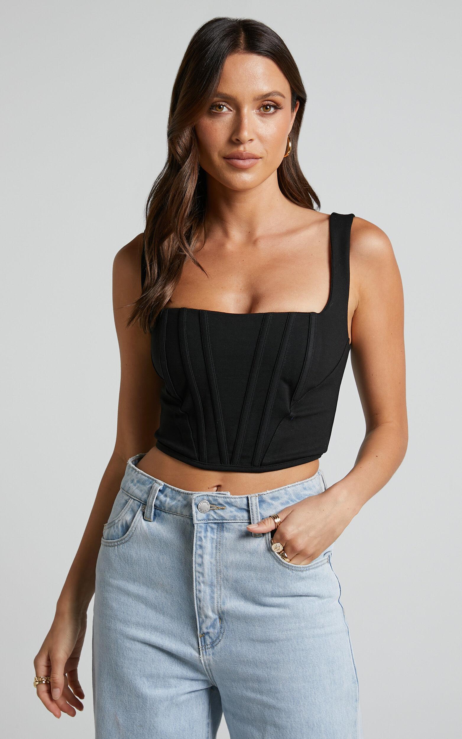 Level up your fashion game with our Pellar Top. This square neck corset top in black is the perfect addition to your wardrobe, whether you're heading out for a casual day or hitting the town for a night of partying. Made from high-quality ponte fabric and polyester, this trendy piece will keep you comfortable and stylish all summer long. With its sleeveless design and crop length, it's ideal for those weekend activities or festival days where you want to show off your unique sense of style. Embrace your individuality and rock the Pellar Top - because every day is a fashion show!Product Details:Crop length square neckline topSleeveless style perfect for summerMade from comfortable and stretchy ponte fabricVersatile piece for casual, party, festival or weekend activitiesMade of polyester material for easy care and durabilitySize and FitSize S / 8 length: 38cm / 14.96inStudio model is wearing size XS / 6 AU / 2 US / 6 UK / 34 EUStudio model measurements are:Height: 170cm / 5'7''Bust: 84cm / 33''Waist: 61cm / 24''Hip: 88cm / 35''Studio model is wearing size XXXXL / 20 AU / 16 US / 20 UK / 48 EUStudio model measurements are:Height: 165cm / 5'5''Bust: 113cm / 44''Waist: 104cm / 41''Hip: 137cm / 54''Material and CareMain Fabric: 63% Viscose, 32% Nylon, 5% Elastane Lining: 95% Polyester, 5% ElastaneLow / No stretch