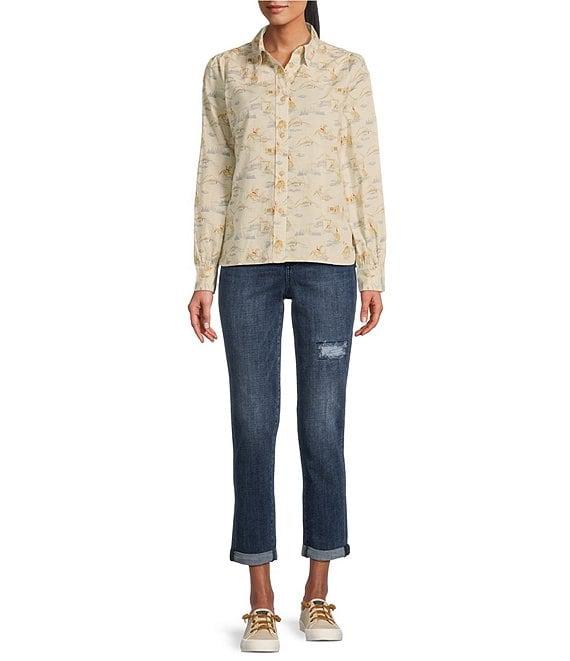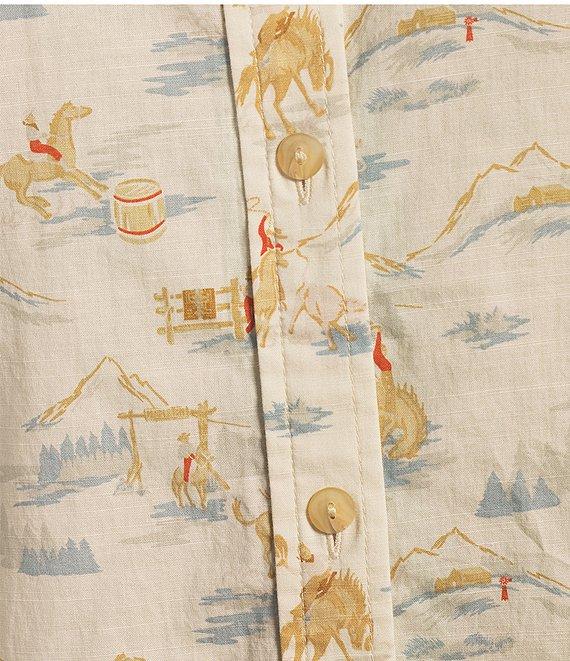 From Pendleton, this blouse features: Ranch rodeo print Western detail front and back design Point collar Puff long sleeves Peek yokes Straight hem with side slits Front full button closure Cotton Machine wash/line dry Imported.