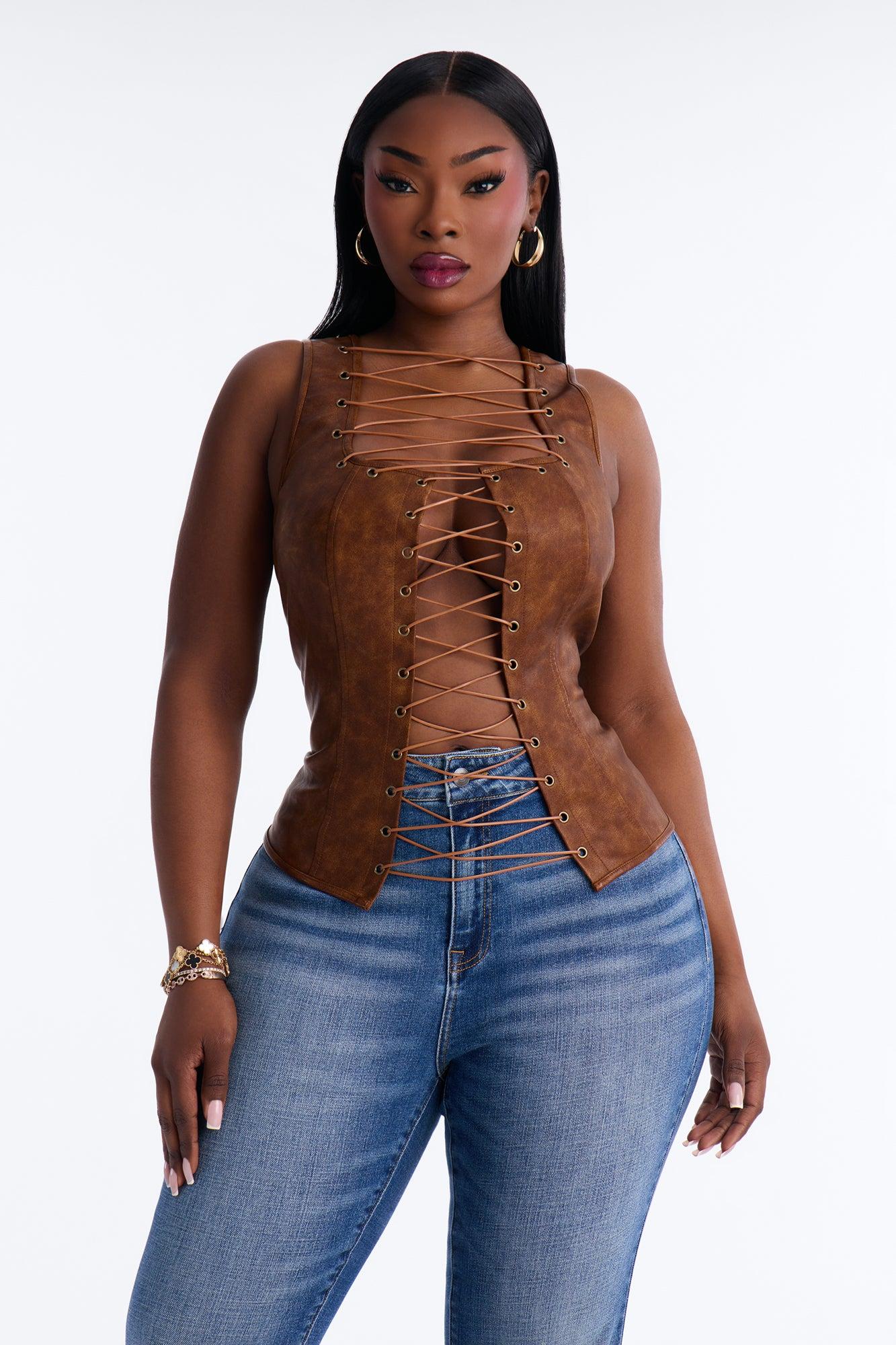 Perfect Affair Faux Leather Top - Brown