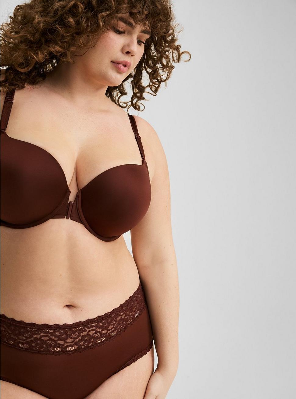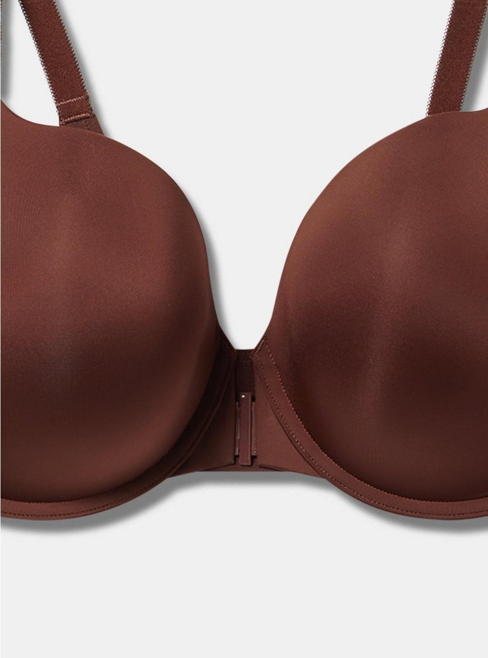 FITPerfect coverage silhouette.Underwire cups.Push-up padding for lift.360° Back Smoothing® sculpts and supports.MATERIALS + CAREMicrofiber knit fabric.79% nylon, 21% spandex.Hand wash cold. Line dry.Imported.DETAILSFront-adjustable straps.Wide side band to keep things smooth.Front closure for easy on and off. WHY WE LOVE ITIt's your perfect-coverage bra with uplifting padding for when you want a little boost. With our patent-pending 360° Back Smoothing® technology so your bra has never been more comfortable or supportive.