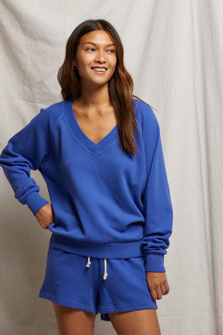 Introducing the Layla French Terry Sweatshort in Violet Blue! Made with our signature french terry cotton, these roomy and comfortable shorts feature a flexible elastic waistband and drawcord. Perfect for lounging, and pairs perfectly with our cash hoodie or tyler sweatshirt. Thoughtfully produced in California.