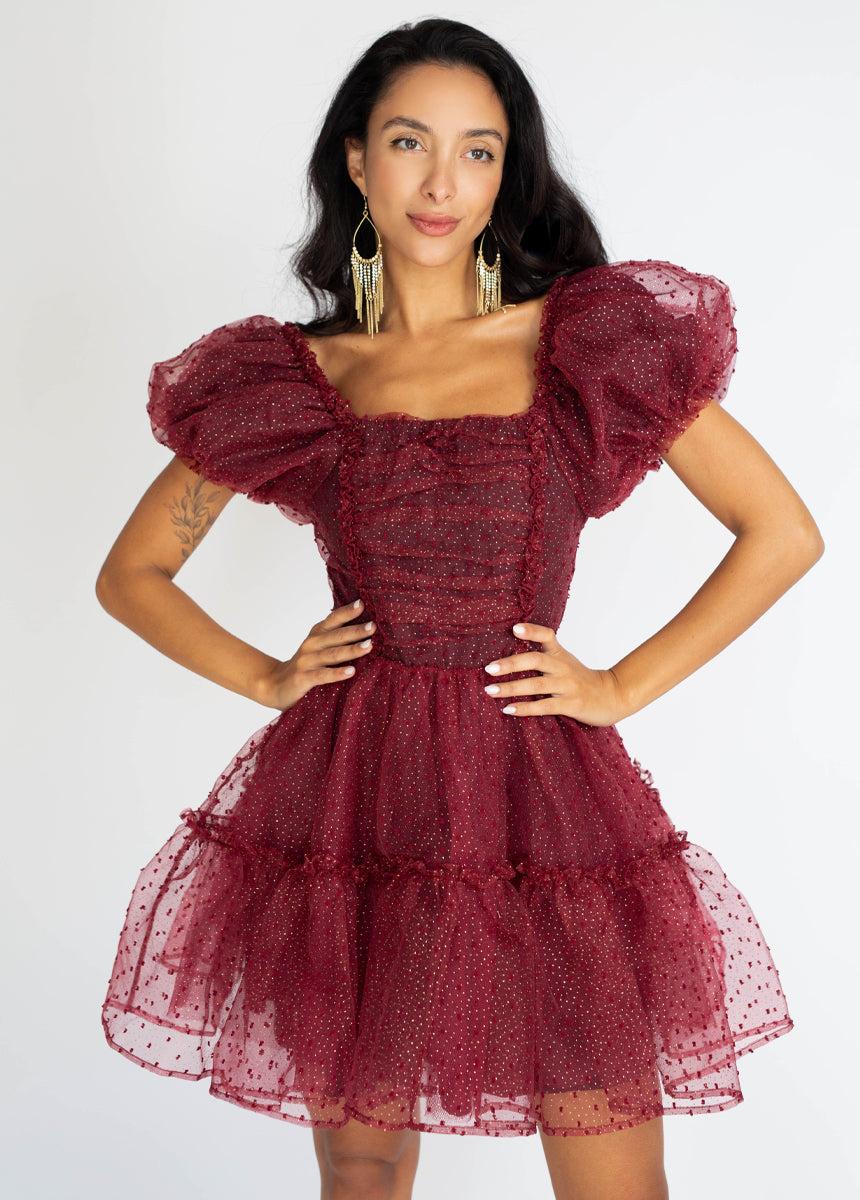 Embrace your playful side with our feminine Perla Dress. This charming short-length dress features a flattering empire waist and a delightful babydoll silhouette that twirls with every step. The puff sleeves add a romantic touch, while the subtle sparkle detail ensures you shine wherever you go. With a lined bodice and skirt for comfort and an invisible zipper at the center back for a seamless finish, this dress is perfect for any occasion, from brunch to evening outings. Capture hearts and turn heads in this enchanting piece! Short length Empire waist Babydoll silhouette Puff sleeves Lined bodice and skirt Invisible zipper at center back 100% Polyester Hand wash only, line dry Model is 5'5" wearing an XS
