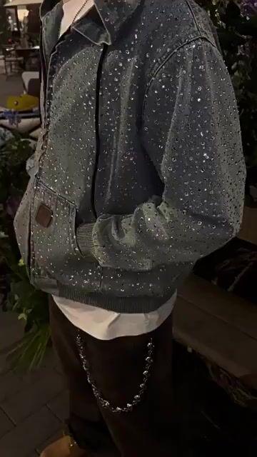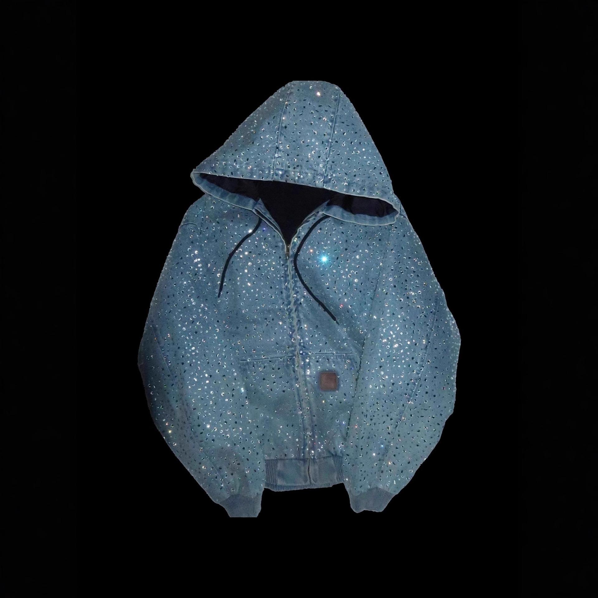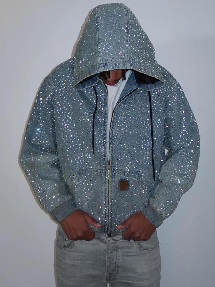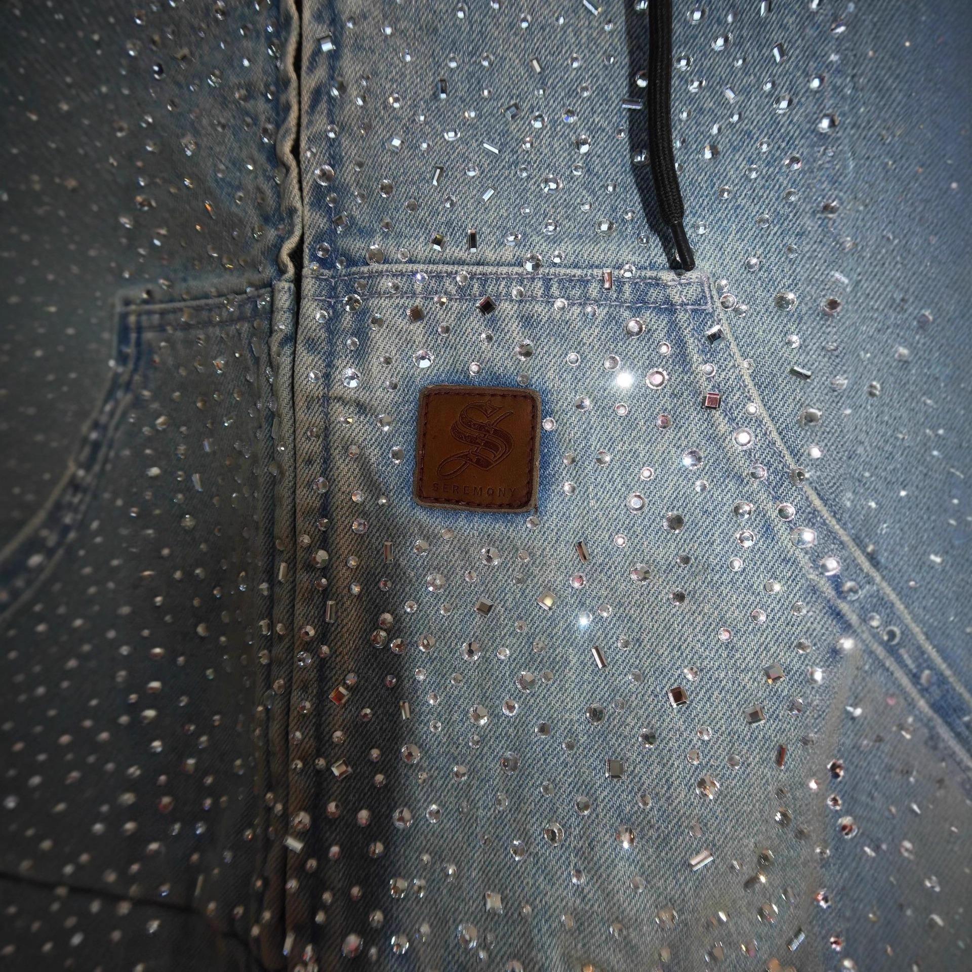Personalized Rhinestone Zippered Denim Hoodie