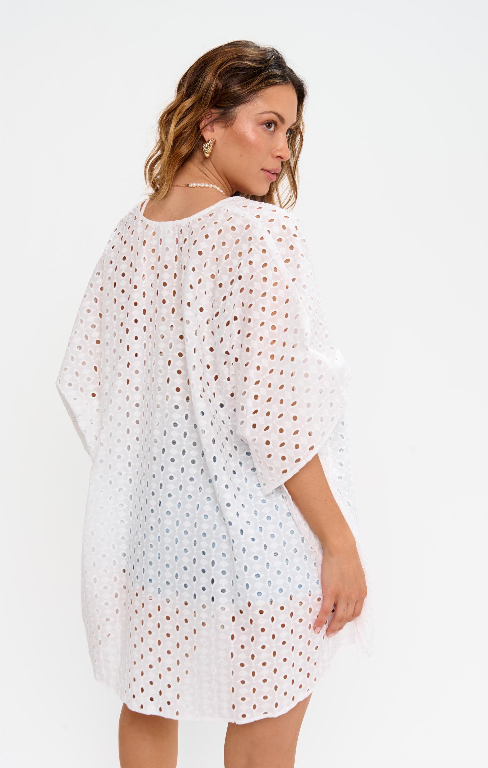Peta is a Mu classic! This crowd favorite has been around since the beginning. This classic eyelet tunic can be thrown over a bikini, and worn with little shorts, leggings, or jeans. Oversized and unbelievably comfy, but so flattering and glamorous all at the same time.