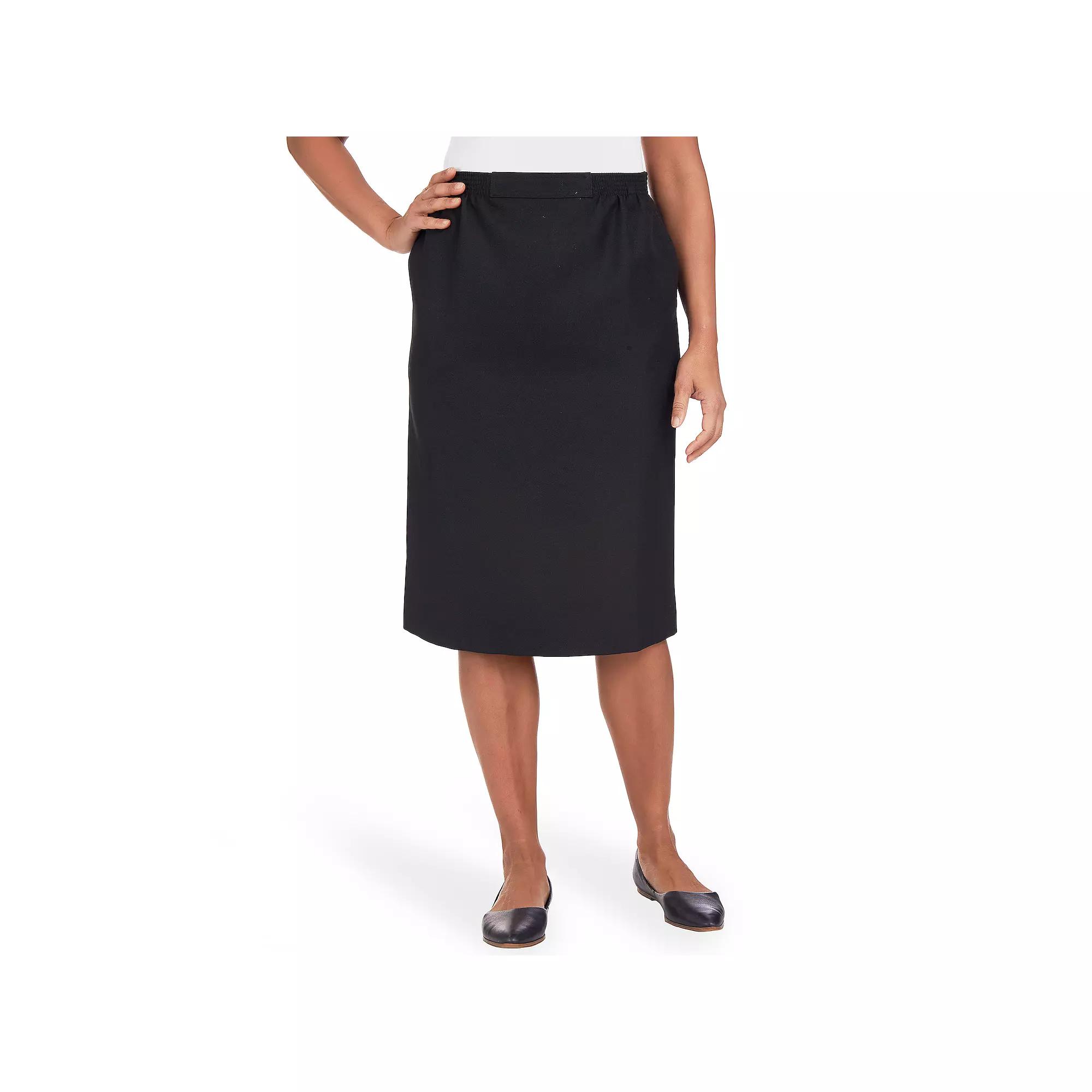 You'll look stylish in this Women's Alfred Dunner Cinch Waist Midi Skirt with Slant Pockets.Click on this WOMEN'S GUIDE to find the perfect fit and more!You'll look stylish in this Women's Alfred Dunner Cinch Waist Midi Skirt with Slant Pockets. Click on this WOMEN'S GUIDE to find the perfect fit and more!FEATURES Pencil silhouette Slant Pockets No closure - pull-on stylingFIT & SIZING 24 1/2-in. length Midi length hits below the knee Midrise sits on the high hip Elastic waistbandFABRIC & CARE Polyester Machine wash and tumble dry Imported Size: 16 Petite. Color: Black. Gender: female. Age Group: adult.