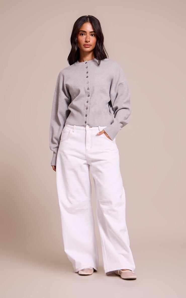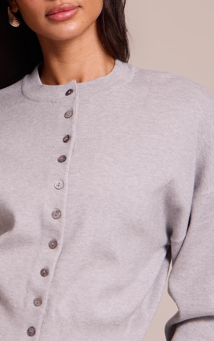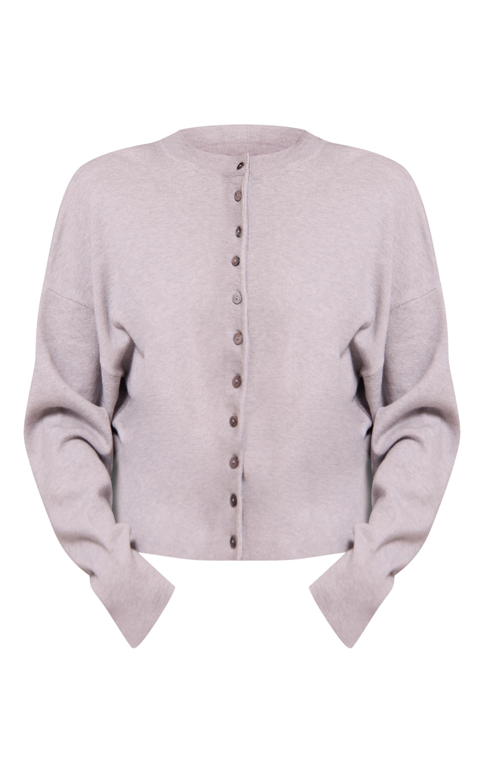 Achieve elevated simplicity. The petite ash grey compact knit cardigan acts as the foundation for a refined aesthetic, featuring a neat crew neckline and a full button-through front, alongside comfortable, relaxed sleeves, all cut to a contemporary cropped length. Pair this versatile piece with crisp white wide-leg pants for a polished day look, or layer it unbuttoned over a simple cami with tailored shorts for an assured, off-duty vibe. This essential knit effortlessly elevates your everyday rotation with its subtle charm.Length approx 45.5cm/18inch (Based on sample size XS)Model wears size XSModel Height - 5ft 2inchp]:!mb-4inch>Brand: PrettyLittleThingCategory: KnitwearProduct type: CardigansColor: Ash GreyMaterial: KnitOccasion: Day