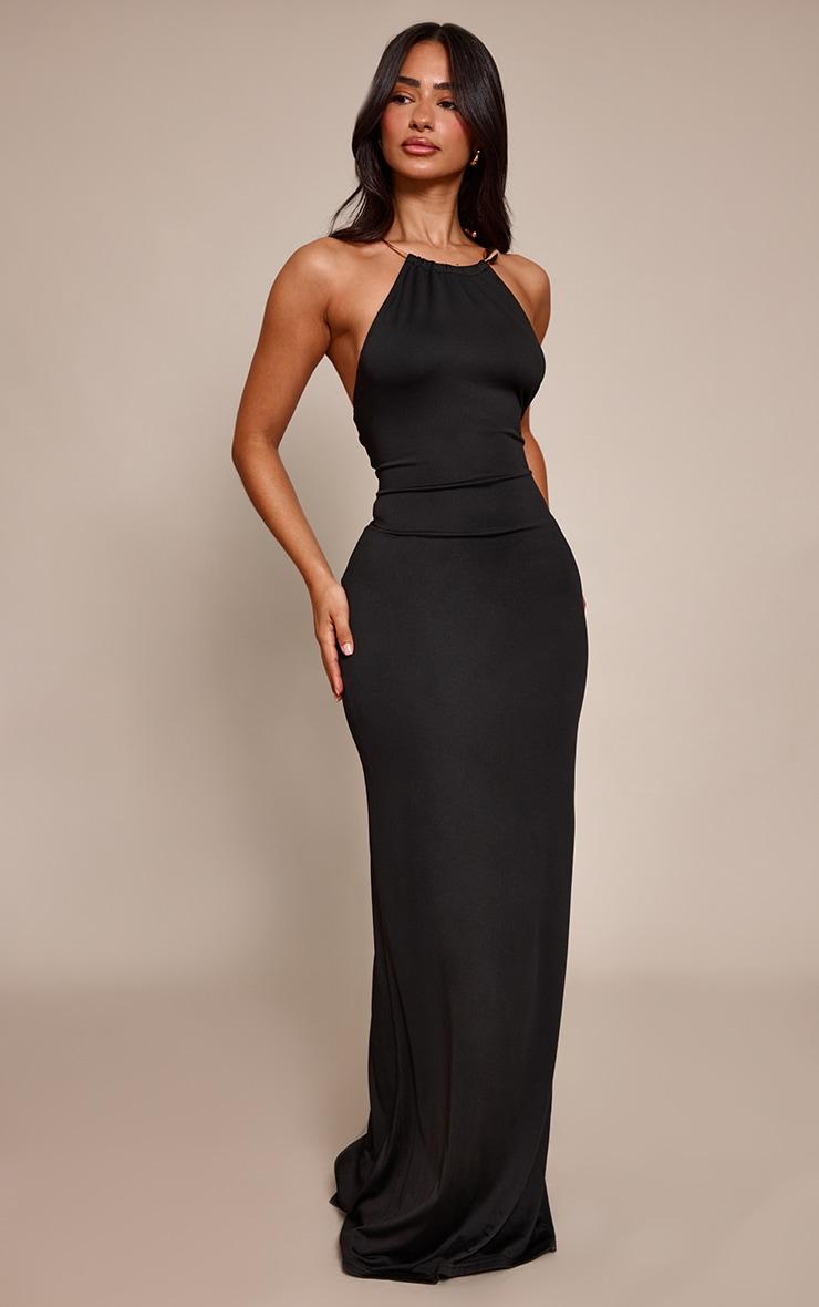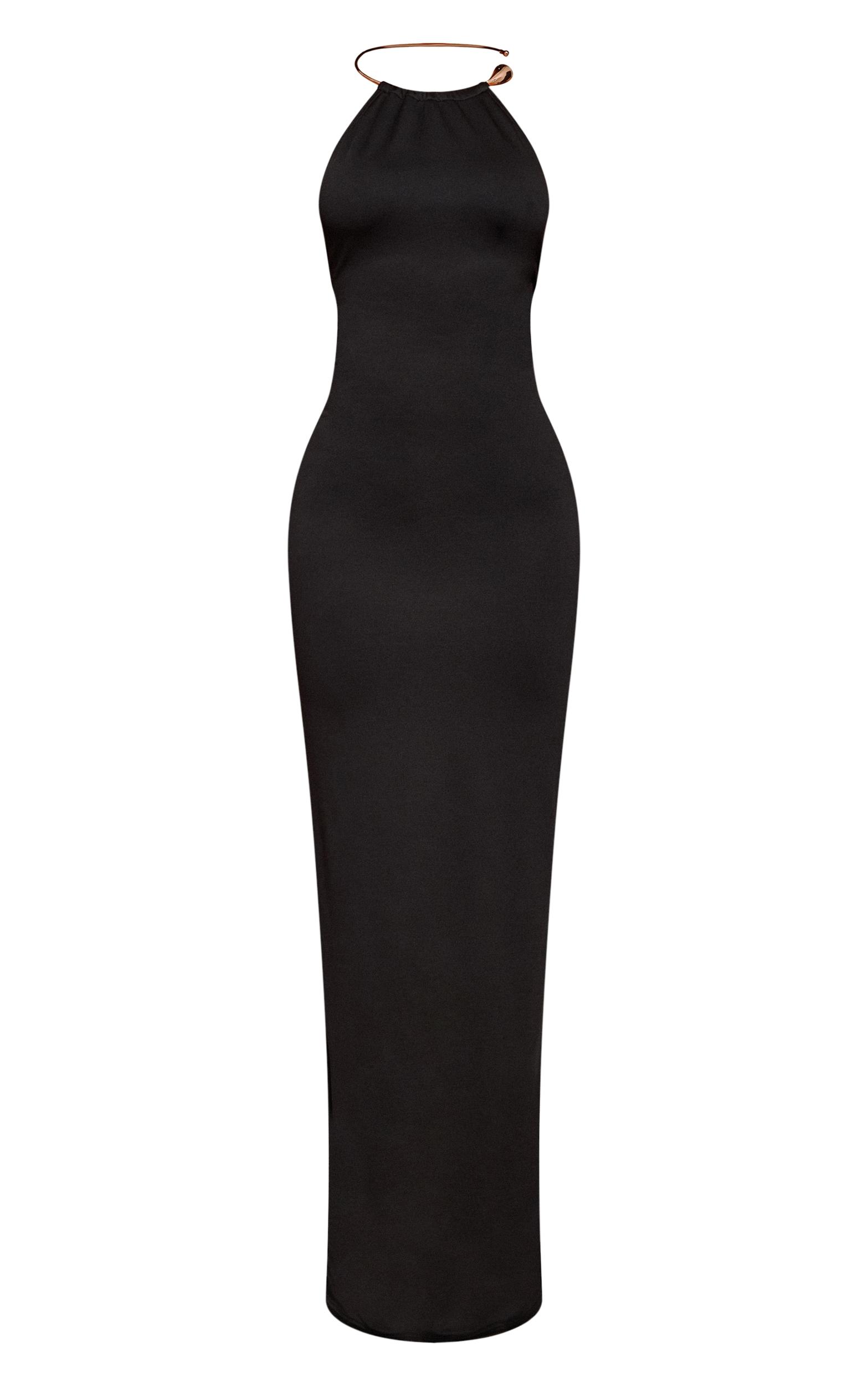 Certain pieces just have an undeniable presence. The petite black gold halterneck trim detail maxi dress commands attention with its sleek bodycon maxi cut, designed to elegantly skim your figure. A refined halter neckline, beautifully accented by a distinctive gold-tone trim, subtly draws the eye, while the open back ensures a confident finish. For an undeniably polished aesthetic, pair this piece with sleek slip on heels and minimalist gold accessories, letting the dress speak for itself, ensuring an undeniable presence for any evening occasion.Length approx 147.5cm/58inch (Based on sample size US 2)Model wears size UK 6/ EU 34/ AUS 6/ US 2Model Height - 5ft 2inchp]:!mb-4inch>Brand: PrettyLittleThingCategory: DressesProduct type: Bodycon DressColor: BlackMaterial: Cotton JerseyOccasion: Evening