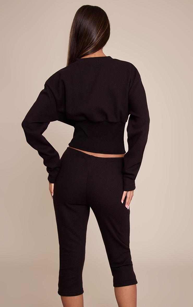 Refresh your off-duty wardrobe with these petite black ribbed waistband capri Pants. Designed in black ribbed stretch fabric with a flattering soft waistband and a cropped silhouette, these capris are perfect for everyday comfort. Pair with a fitted top and sneakers for an easy, laid-back vibe.Length approx 45.5cm/18inch (Based on sample size XS)Model wears size XSModel Height - 5ft 3inchp]:!mb-4inch>Brand: PrettyLittleThingCategory: AthleisureProduct type: Yoga PantColor: BlackMaterial: Loopback SweatOccasion: Day