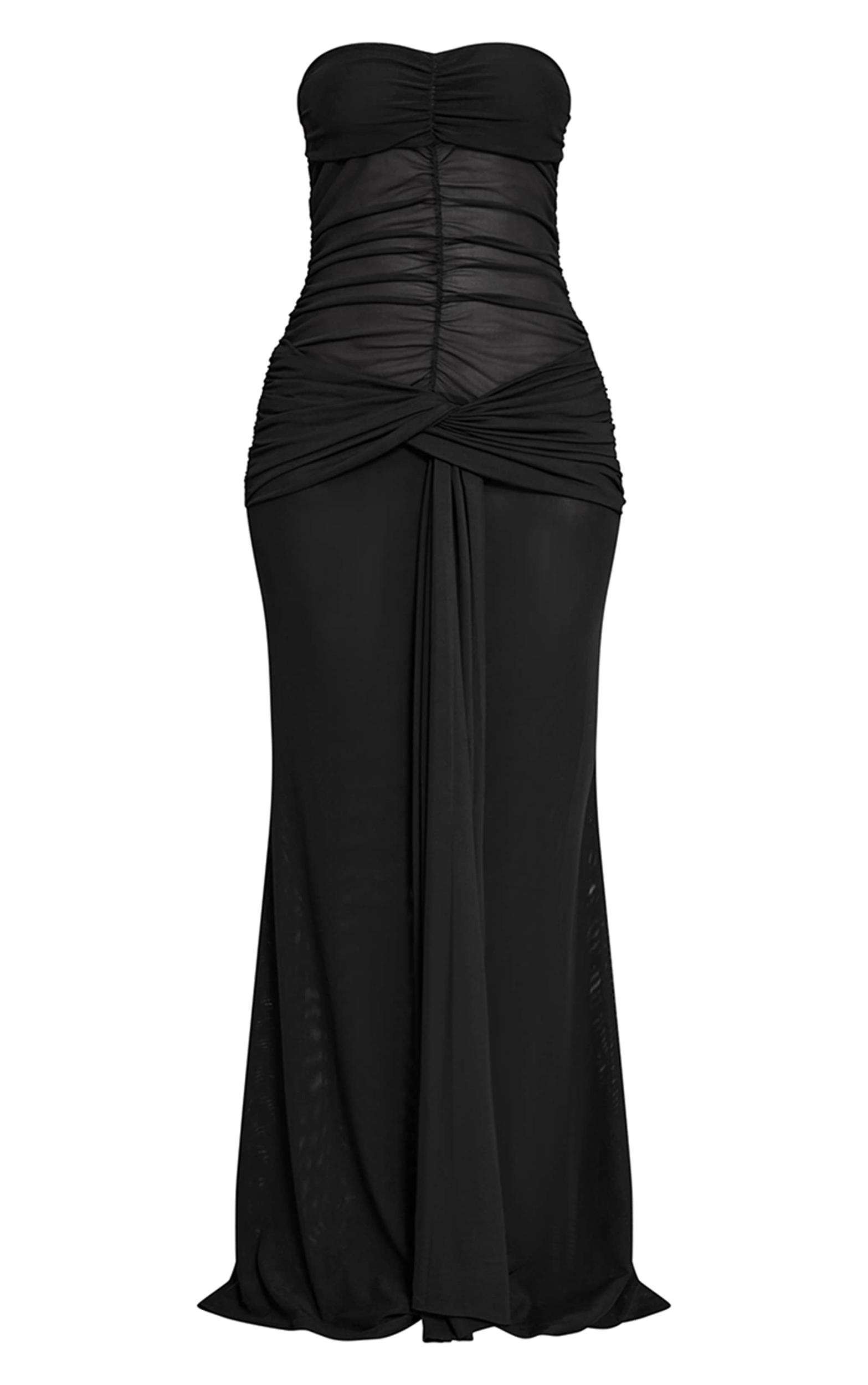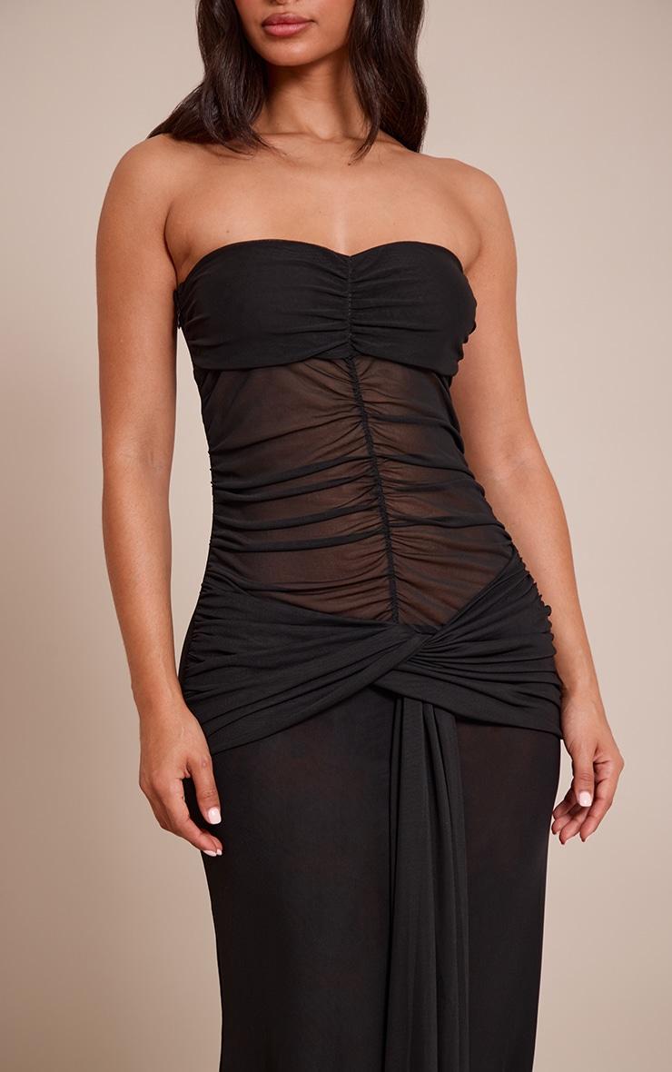 The petite black ruched drape bandeau maxi dress is glamorous and figure-flattering with ruched detailing. Pair with strappy heels and a clutch for formal occasions, or add a lightweight shawl for a refined touch.Length approx 139.5cm/55inch (Based on sample size US 2)Model wears size UK 6/ EU 34/ AUS 6/ US 2Model Height - 5ft 2inchp]:!mb-4inch>Brand: PrettyLittleThingCategory: DressesProduct type: Bodycon DressColor: BlackMaterial: MeshOccasion: Occasion