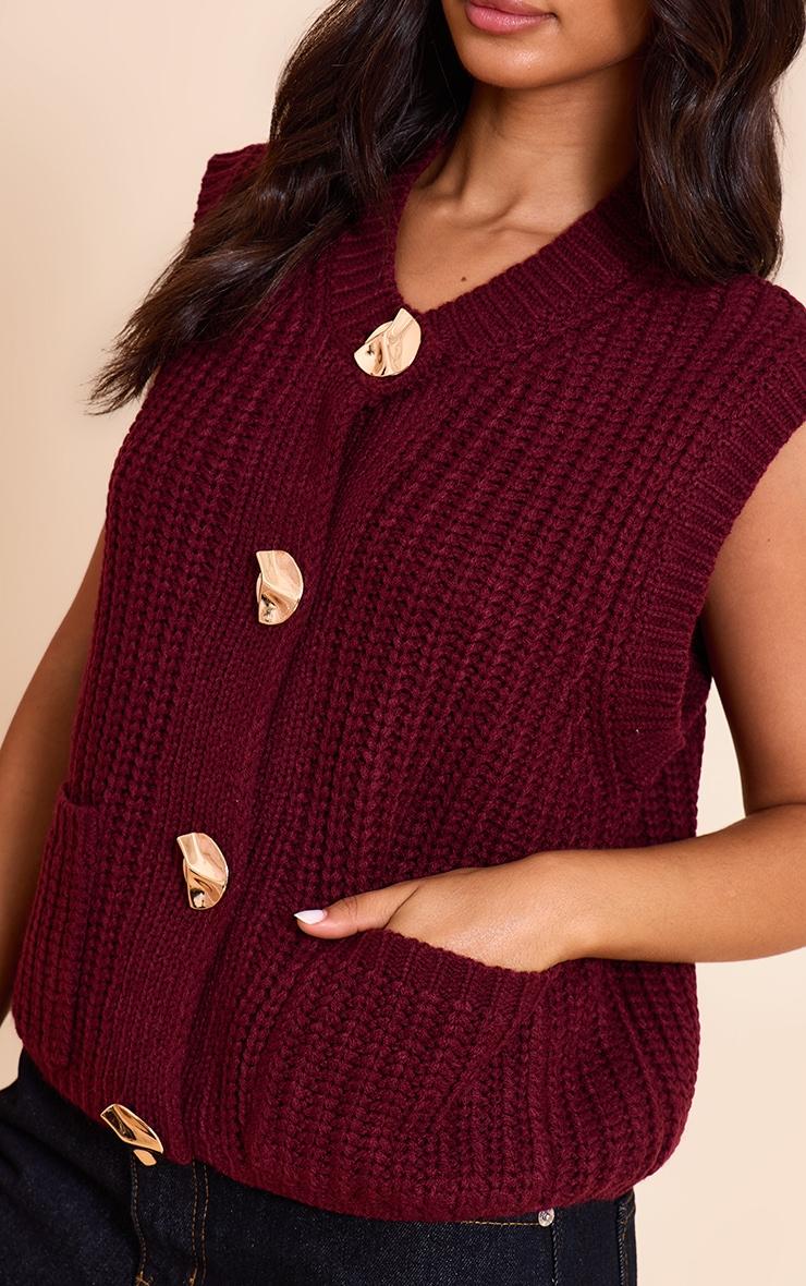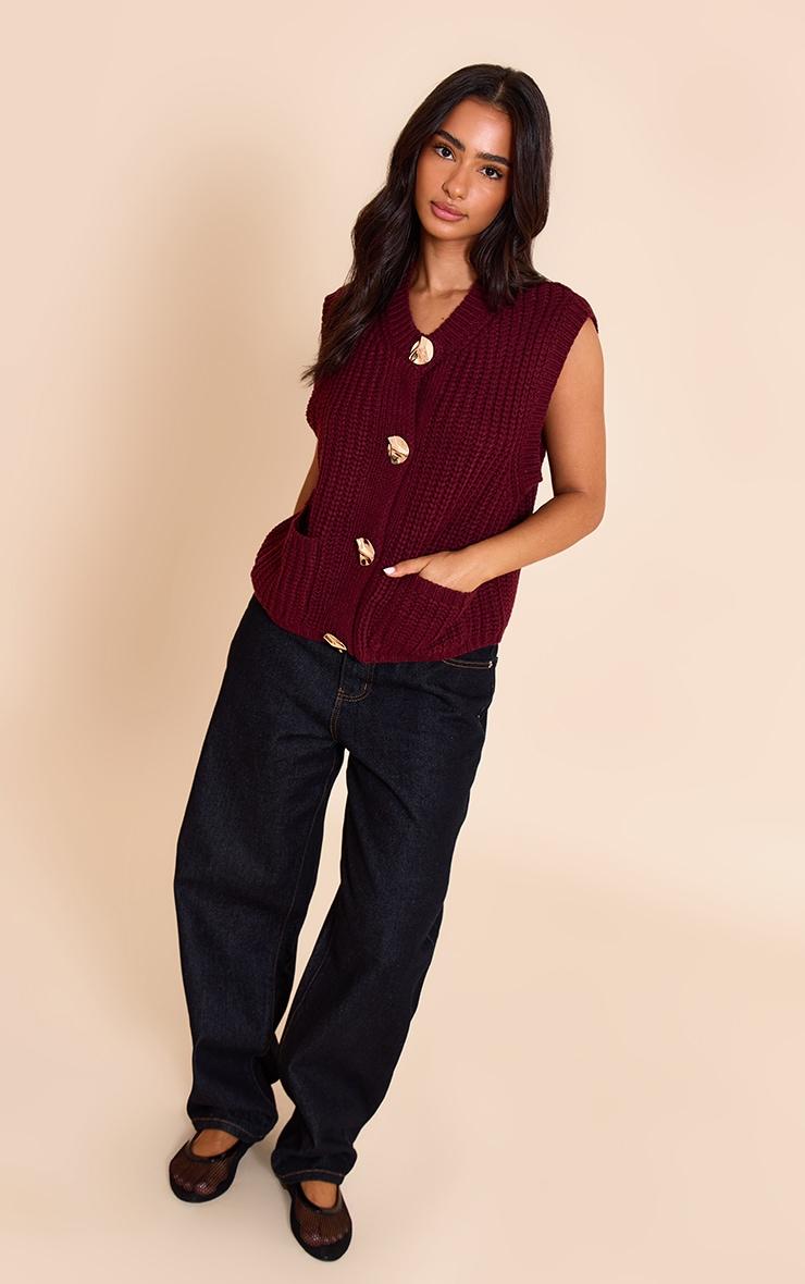 Stand out from the rest with this petite burgundy button detail knitted Vest. Brought to you in a burgundy knitted material with a button detail and a flattering fit. Team this petite Vest top with some wide leg pants or jeans and ballet flats to finish off the look.Length approx 45.5cm/18inch (Based on sample size US 2)Model wears size UK 6/ EU 34/ AUS 6/ US 2Model Height - 5ft 2inchp]:!mb-4inch>Category: KnitwearProduct type: CardigansColor: BurgundyMaterial: KnitOccasion: Evening