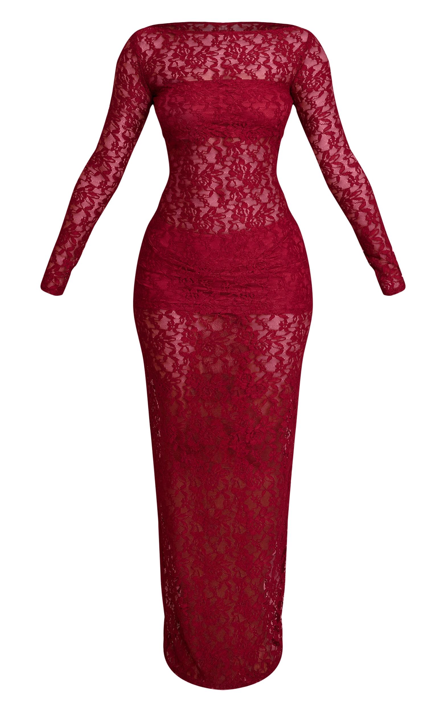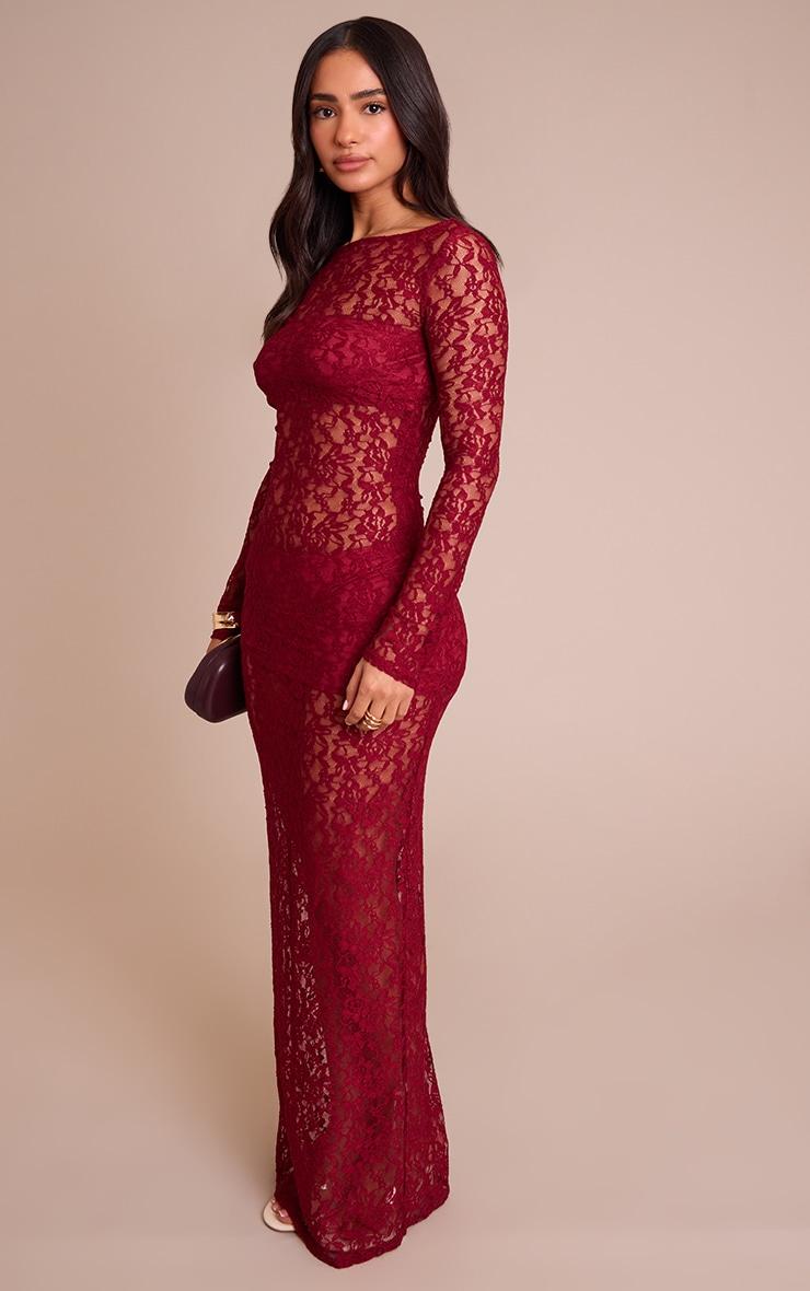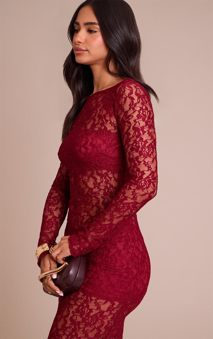 This petite burgundy sheer lace long sleeve maxi dress is perfect for those stand out moments. Brought to you in a burgundy sheer lace material with a long sleeve design and a maxi length. Pair this petite dress with heels and a clutch bag to level up your look.Length approx 147.5cm/58inch (Based on sample size US 2)Model wears size UK 6/ EU 34/ AUS 6/ US 2Model Height - 5ft 2inchp]:!mb-4inch>Brand: PrettyLittleThingCategory: DressesProduct type: Bodycon DressColor: RedMaterial: Woven LaceOccasion: Occasion