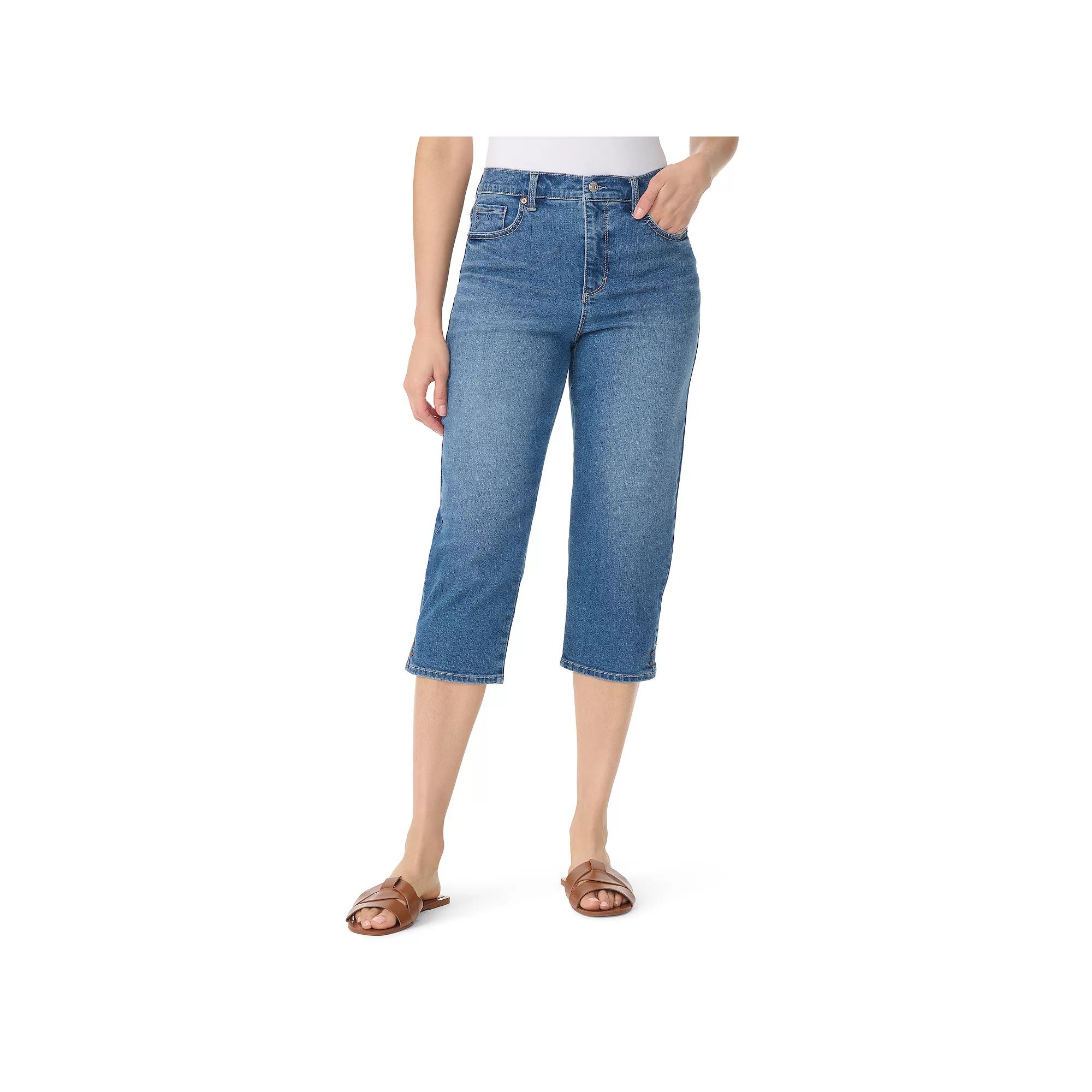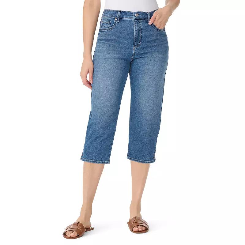Elevate your wardrobe with these Gloria Vanderbilt capri jeans featuring a stylish slit design. These straight-leg jeans offer a flattering high-rise fit, ensuring comfort and sophistication. Click on this WOMEN'S GUIDE to find the perfect fit and more! - https://www.kohls.com/feature/womens-fit-guide.jsp. FEATURES: Belt loops, Straight-leg cut, Classic 5 pocket style, Button & zipper closure, Unlined. FIT & SIZING: 21-in inseam, 15 1/2-in leg opening, Midi length hits below the knee, High rise sits below the natural waistline, Fitted through the hip and thigh, Straight leg opening. FABRIC & CARE: Cotton, polyester, viscose, spandex, Machine wash, Imported. Size: 12. Color: Ellsworth W Whiskers. Gender: female. Age Group: adult. Material: DENIM.