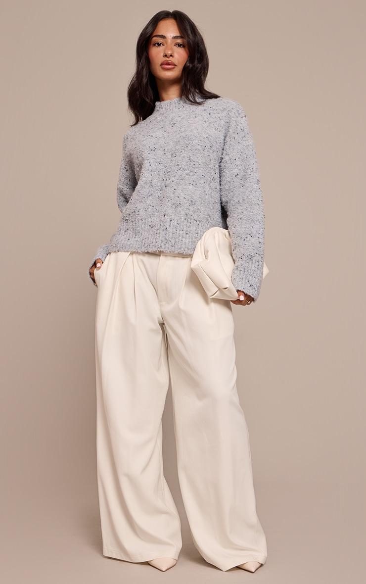 Keep it classic with the petite knitted grey marl oversized sweater. Cut from a soft grey marl knit, this sweater is designed with an oversized silhouette and dropped shoulders for a relaxed fit. Pair with leggings or a pair of wide leg pants sneakers for laid-back weekend styling.Length approx 45.5cm/18inch (Based on sample size XS)Model wears size XSModel Height - 5ft 2inchp]:!mb-4inch>Category: KnitwearProduct type: SweaterColor: BeigeMaterial: KnitOccasion: Day