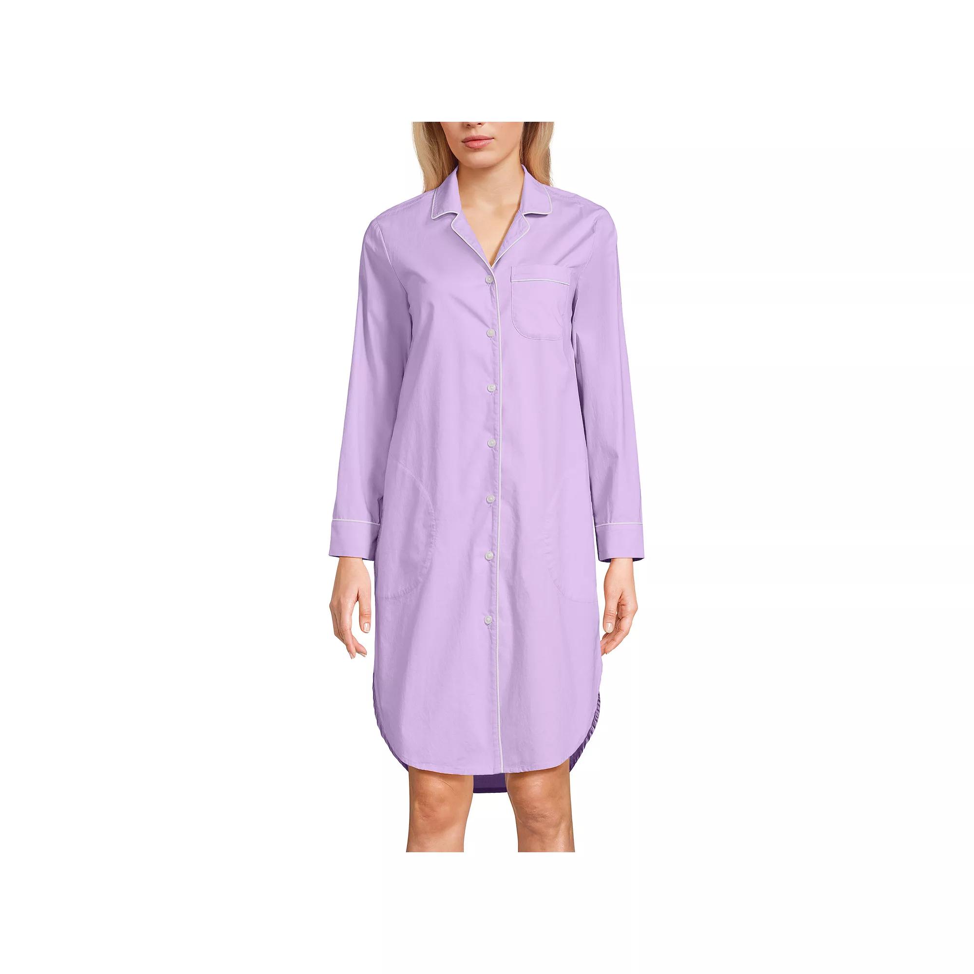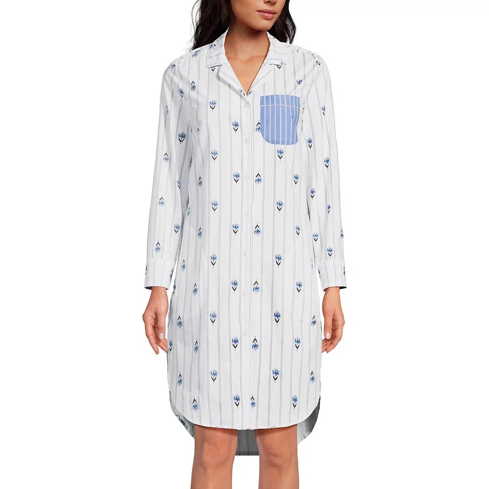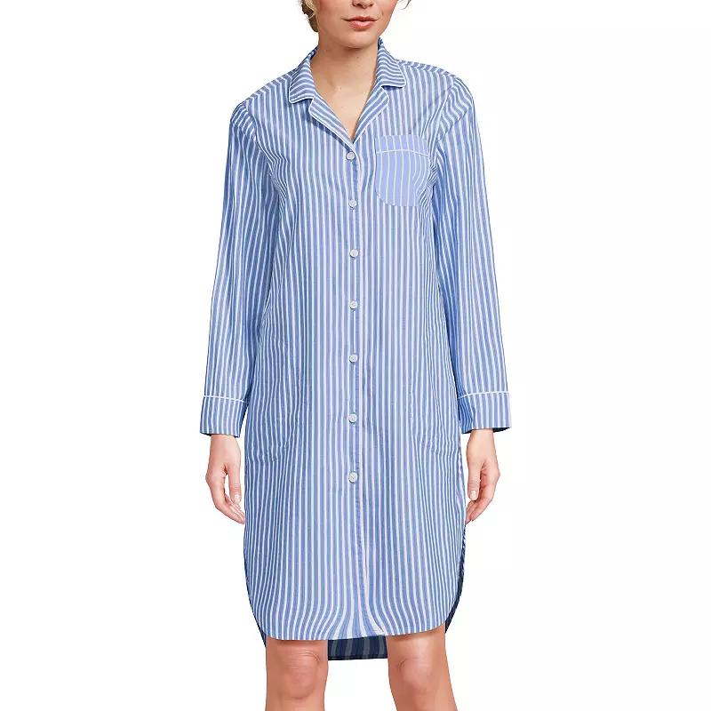 Embrace cozy, stylish evenings with this charming sleepshirt from Lands' End, designed for effortless relaxation. Its lightweight cotton poplin fabric and relaxed fit provide ultimate comfort, while elegant details like a button placket and chic chest pocket add a polished touch that makes winding down feel like a luxury. Click on this INTIMATES & SLEEPWEAR GUIDE to find the perfect fit and more! - https://www.kohls.com/feature/womens-sleepwear-and-intimates-guide.jsp. FEATURES: Breathable cotton poplin for all-night comfort, Single chest pocket, Button front, Long sleeves, Unlined, Collared neckline. FIT & SIZING: Relaxed, 38 1/2-in. length from shoulder to hem. FABRIC & CARE: Cotton, Machine wash, Imported. Size: Large. Color: Mint Cobalt Stripe. Gender: female. Age Group: adult.