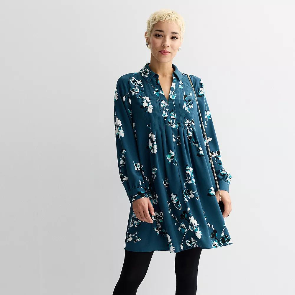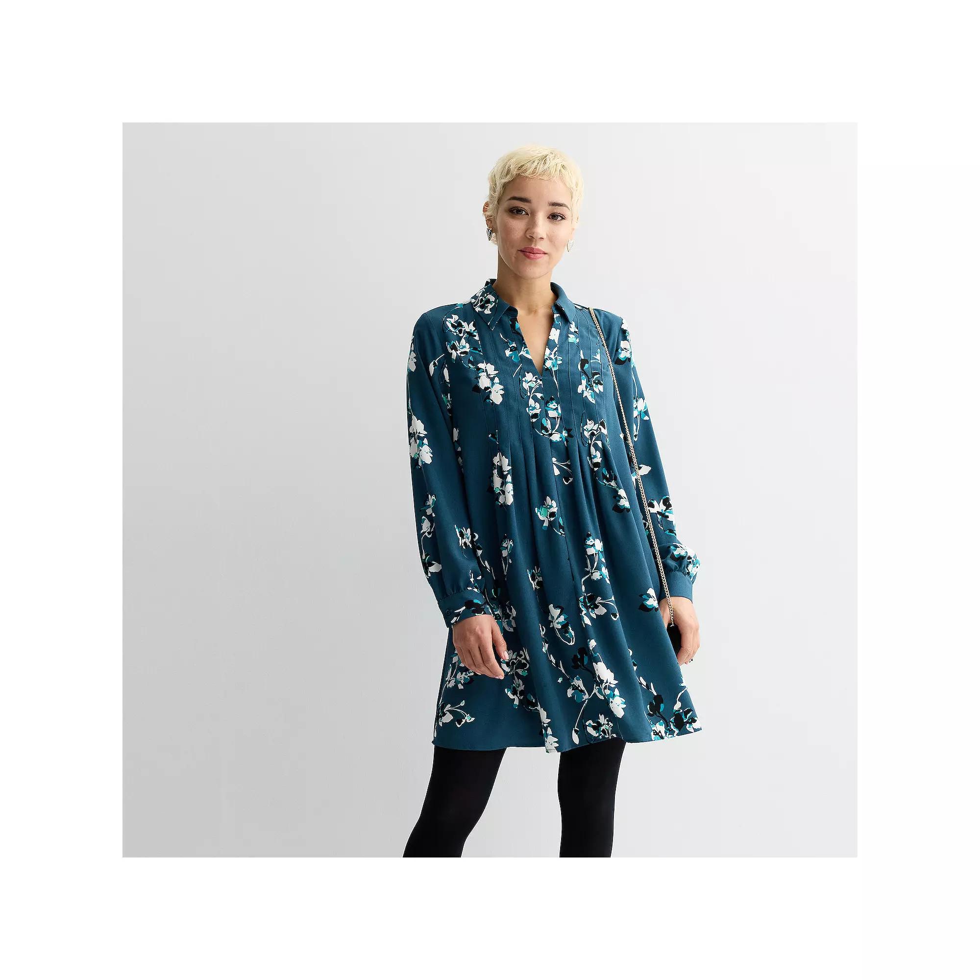 Elevate your wardrobe with this charming mini dress from Nine West, designed to offer a flattering silhouette that flows beautifully with every step. Perfect for both casual outings and more formal occasions, it effortlessly combines style and comfort, making it a versatile addition to any modern woman's closet. Click on this WOMEN'S GUIDE to find the perfect fit and more! - https://www.kohls.com/feature/womens-fit-guide.jsp. FEATURES: V-neck, Cuffed long sleeves, Unlined. FIT & SIZING: Classic fit, 34-in. length from shoulder to hem, Mini length hits at the thigh. FABRIC & CARE: Polyester crepe, Machine wash, Imported. Size: XXL Petite. Color: Teal Willa Vine. Gender: female. Age Group: adult.