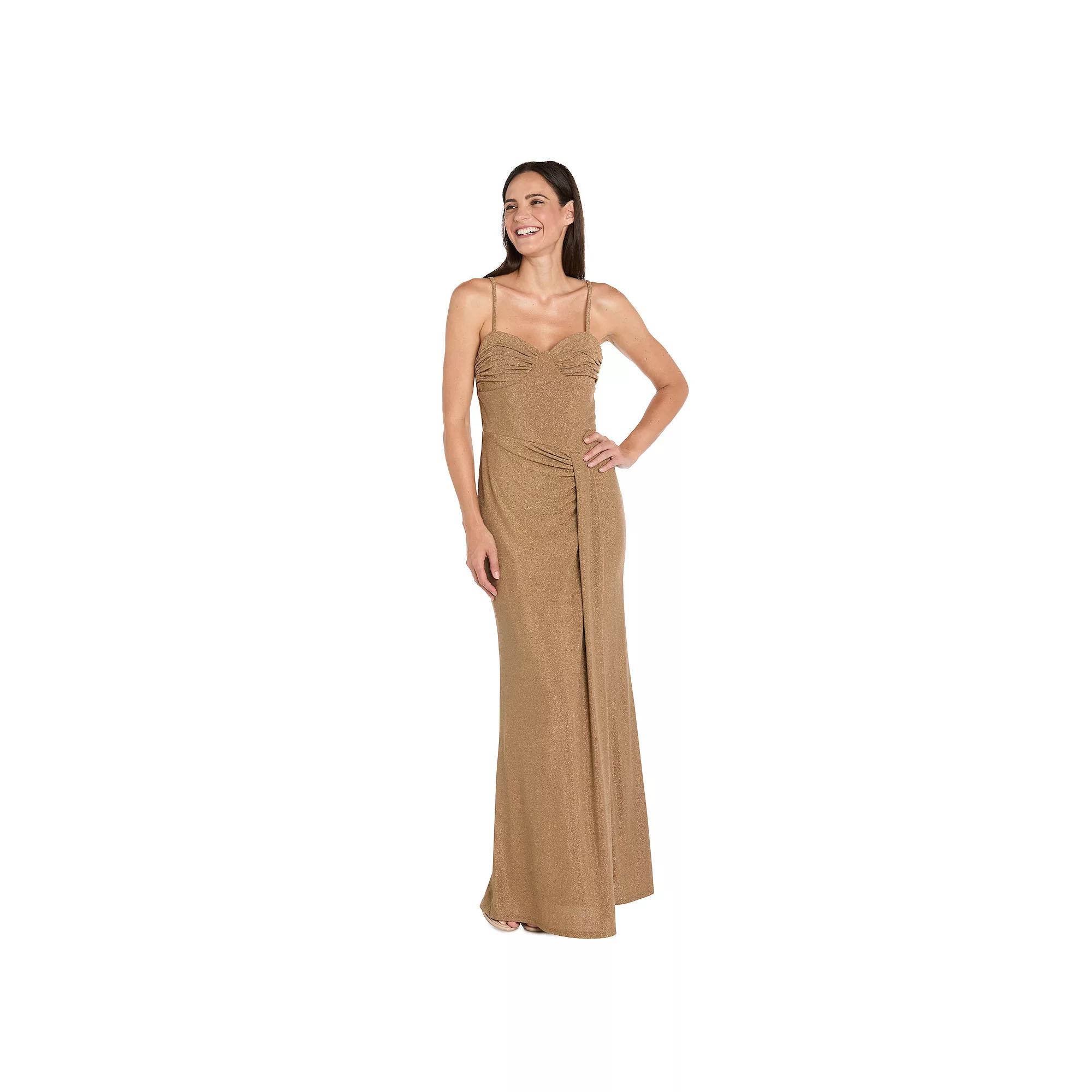 Elevate your next event with the stunning R&M Richards dress that promises to turn heads wherever you go. With its sleek silhouette and delightful drape, this piece is your go-to for feeling fabulous, whether you're dancing the night away or enjoying a cozy dinner out. Click on this WOMEN'S GUIDE to find the perfect fit and more! - https://www.kohls.com/feature/womens-fit-guide.jsp. FEATURES: Soft and drapey feel, Length of 59 inches. FIT & SIZE: Relaxed fit, A-line silhouette, 59-in. length from shoulder to hem, Maxi length hits at the ankle, Straight hem. MATERIAL & CARE: Body: polyester; Lining: polyester, Hand wash. DETAILS: Zipper closure, Sweetheart neckline, Sleeveless, Imported. Size: 10. Color: Gold. Gender: female. Age Group: adult. Pattern: metallic. Material: POLY BLEND.