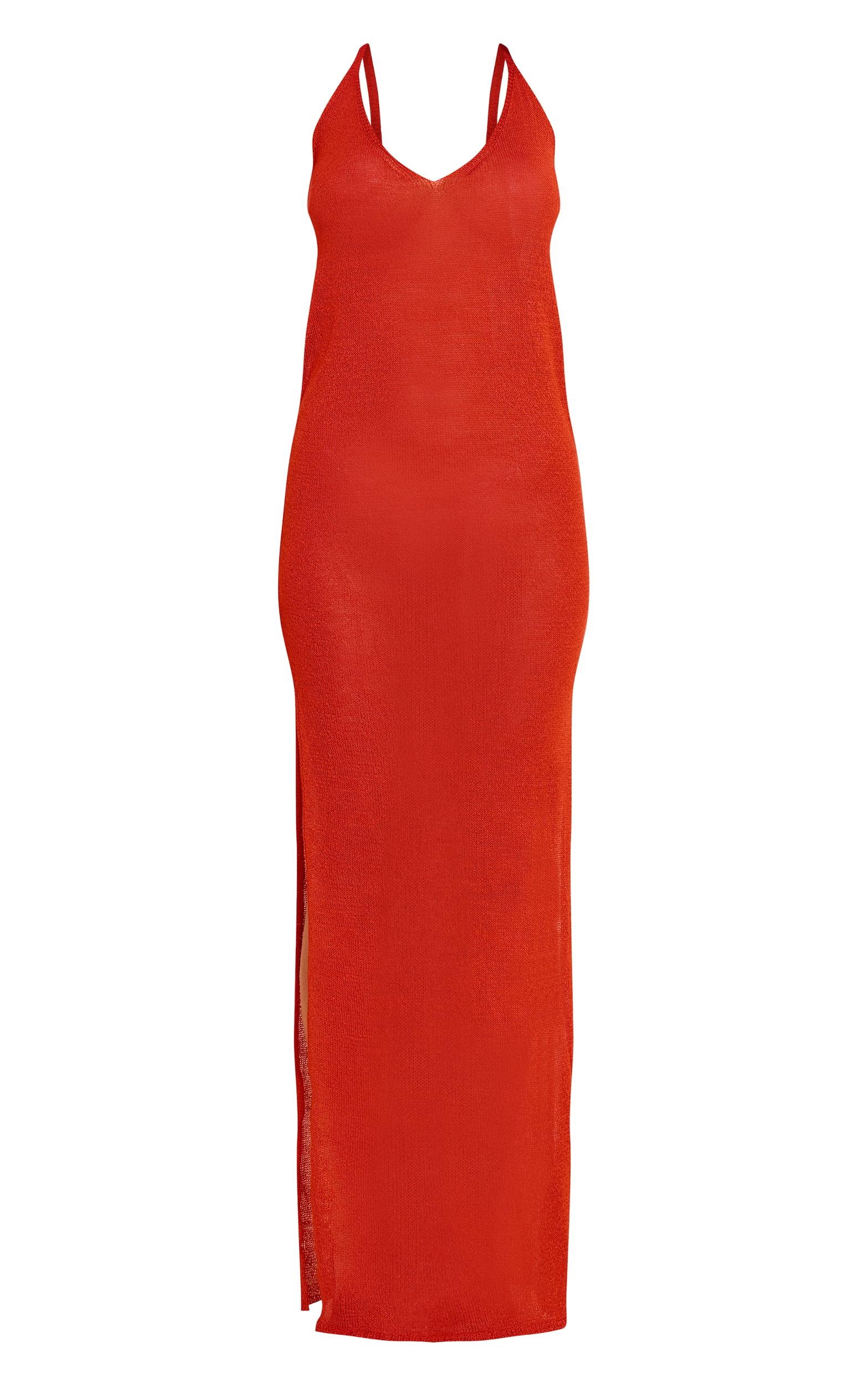 Feel your best in this petite rust sheer knitted strappy maxi dress. Brought to you in rust hue material, this dress has thin straps and a flowing maxi length fit. Team it with a woven bag, chunky bangles and sandals for sunny day perfection.Length approx 147.5cm/58inch (Based on sample size US 2)Model wears size UK 6/ EU 34/ AUS 6/ US 2Model Height - 5ft 3inchp]:!mb-4inch>Brand: PrettyLittleThingCategory: KnitwearProduct type: Bodycon DressColor: RedMaterial: Fine KnitOccasion: Day